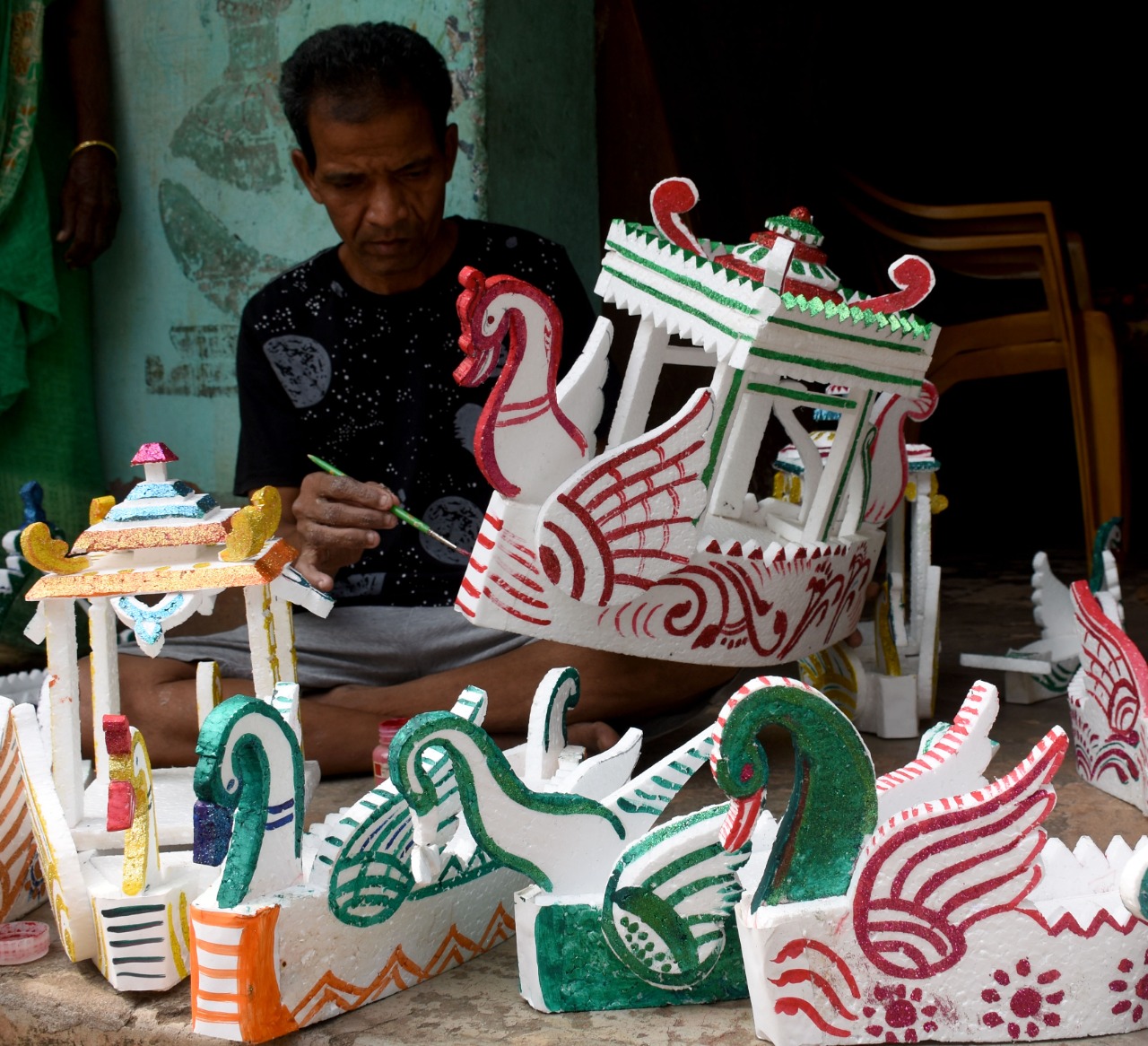 ଆଗକୁ କାର୍ତ୍ତିକ ପୁର୍ଣିମା ବିନ୍ଦୁସାଗର ନାଲାମୁହଁ ସାହିରେ ଜଣେ କାରିଗର ଷୋଲରେ ଡଙ୍ଗା ତିଆରି କରୁଛନ୍ତି