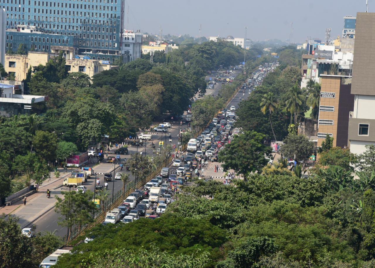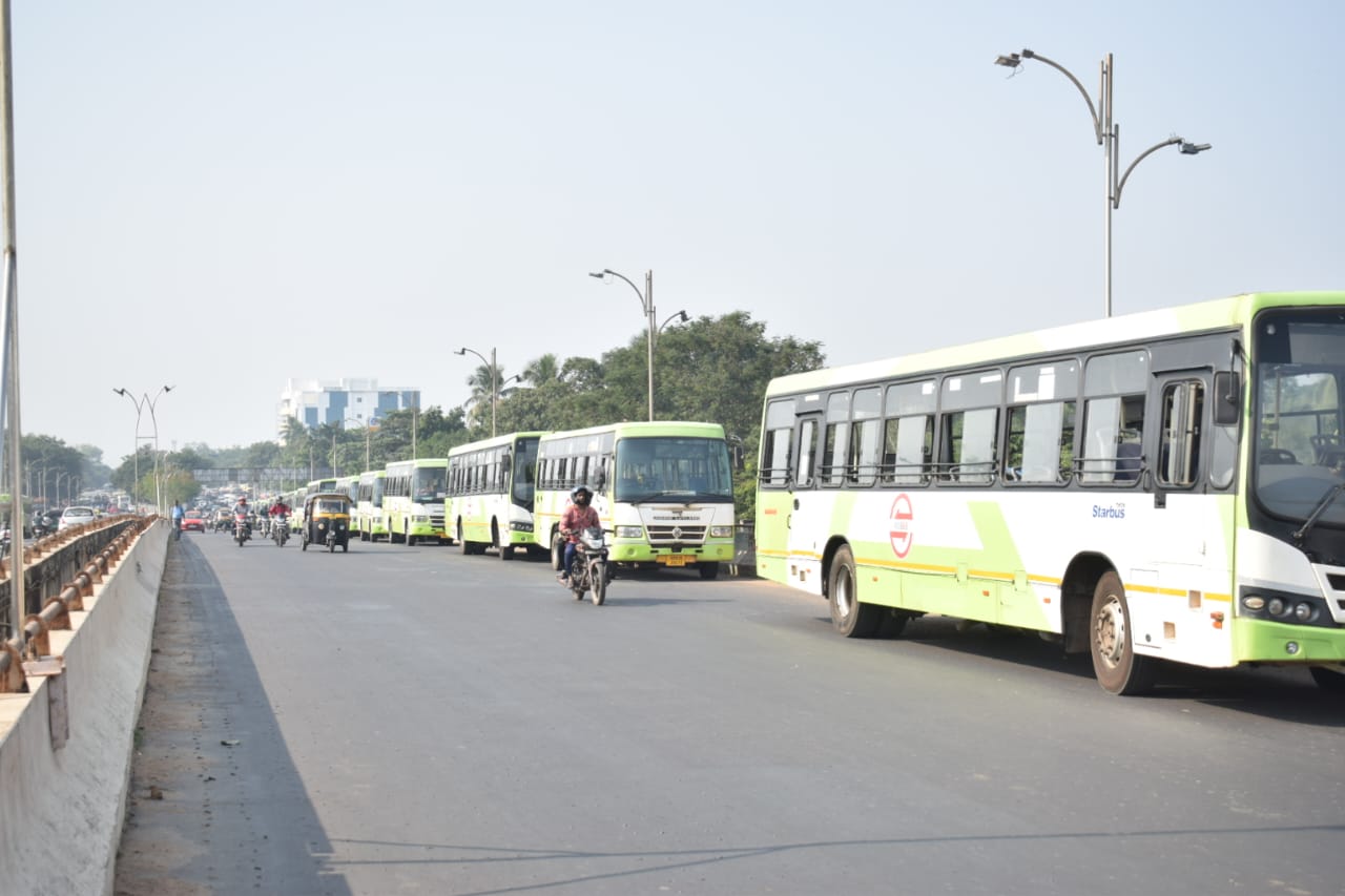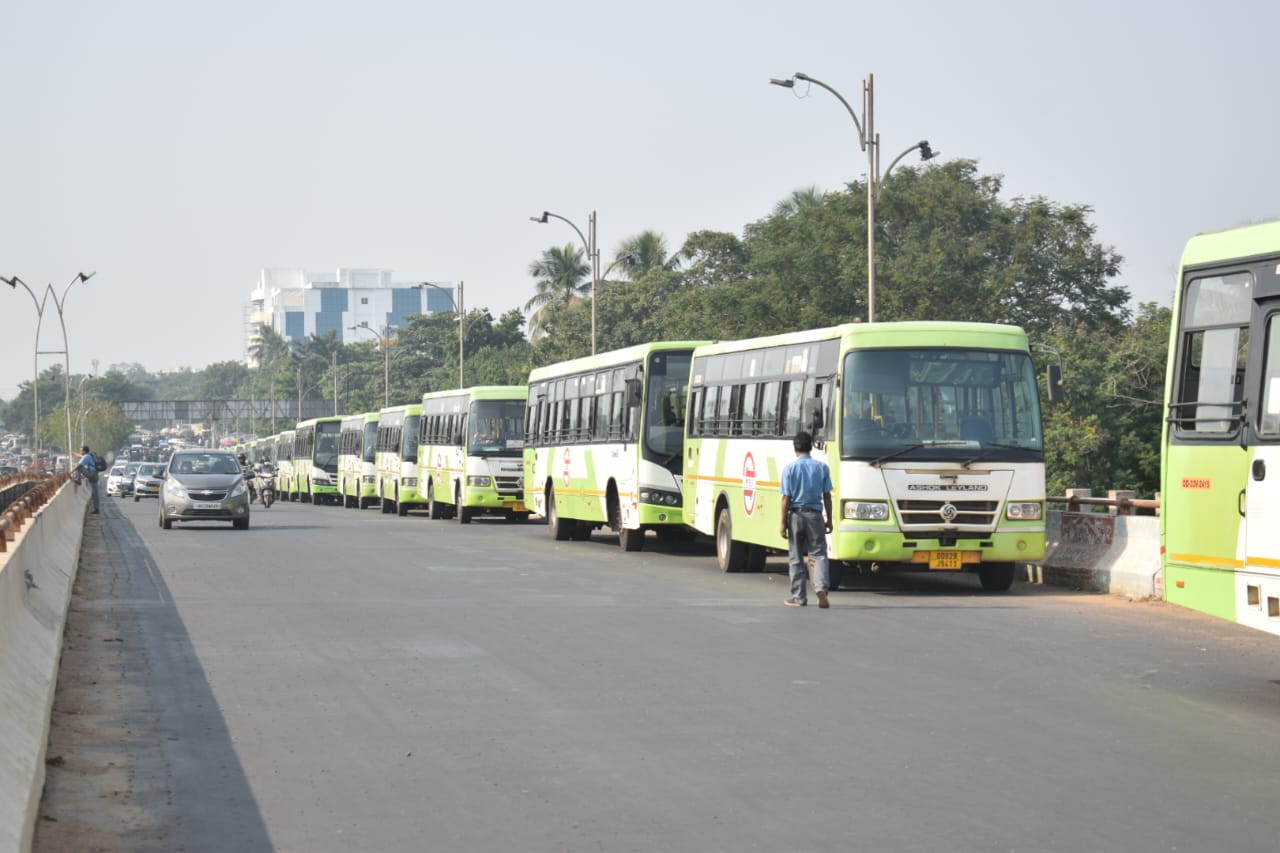 ଆଜି ଭୁବନେଶ୍ୱରର ମାଷ୍ଟର କ୍ୟାଣ୍ଟିନ ଛକରେ ଶିକ୍ଷକମାନେ ବିରୋଧ କରୁଥିବା ବେଳେ ରାଜମହଲ ଓଭରବ୍ରିଜରେ ସିଟି ବସ୍ ଅଟକି ରହିଥିଲା