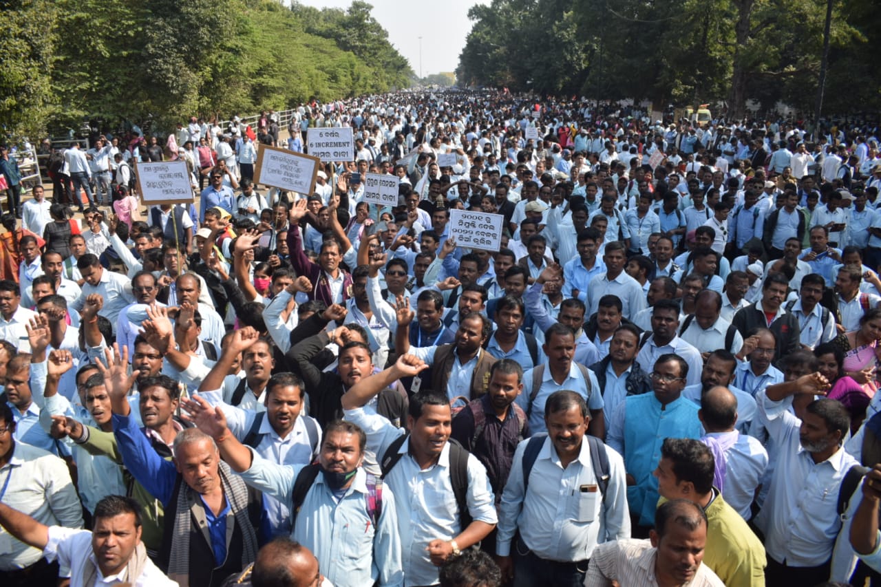 ଭୁବନେଶ୍ୱରର ଲୋୟର ପିଏମଜିରେ ହଜାର ହଜାର ଶିକ୍ଷକ ଦରମା ବୃଦ୍ଧି, ପୁରୁଣା ପେନ୍ସନ୍ ଯୋଜନାର ପୁନ ବୃଦ୍ଧି ଏବଂ ଚୁକ୍ତିନାମା ନିଯୁକ୍ତି ବ୍ୟବସ୍ଥା ରଦ୍ଦ କରିବାକୁ ଧାରଣାରେ ବସିଛନ୍ତି
