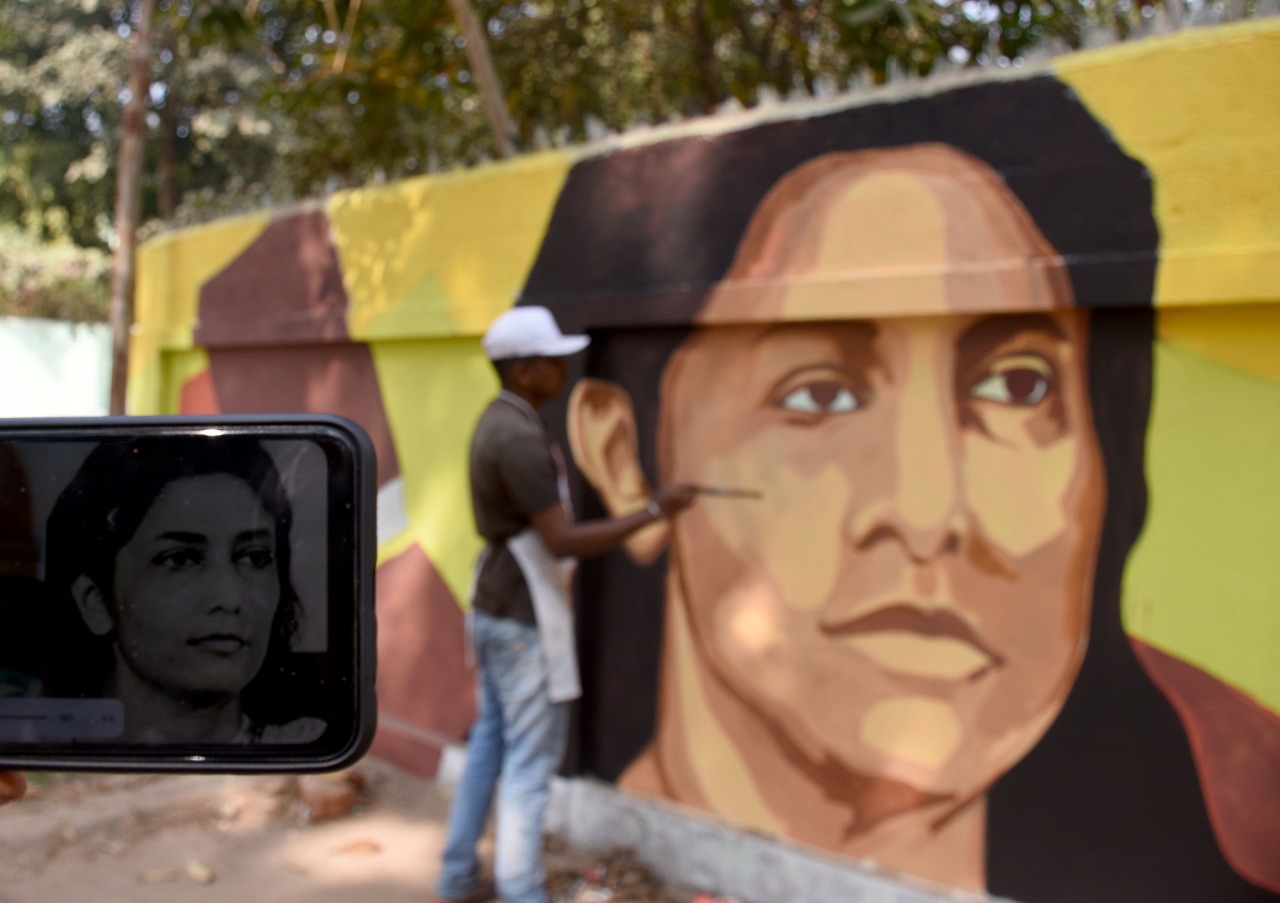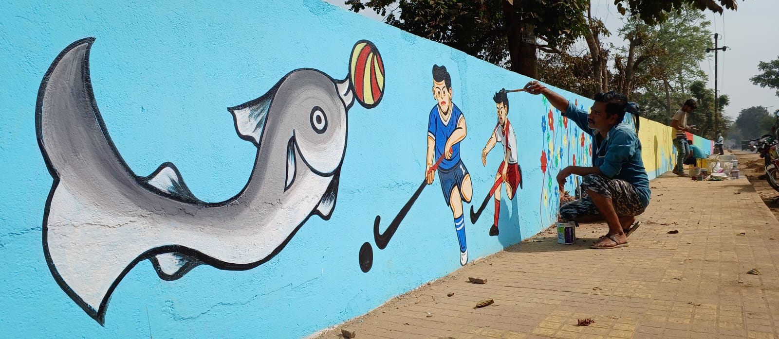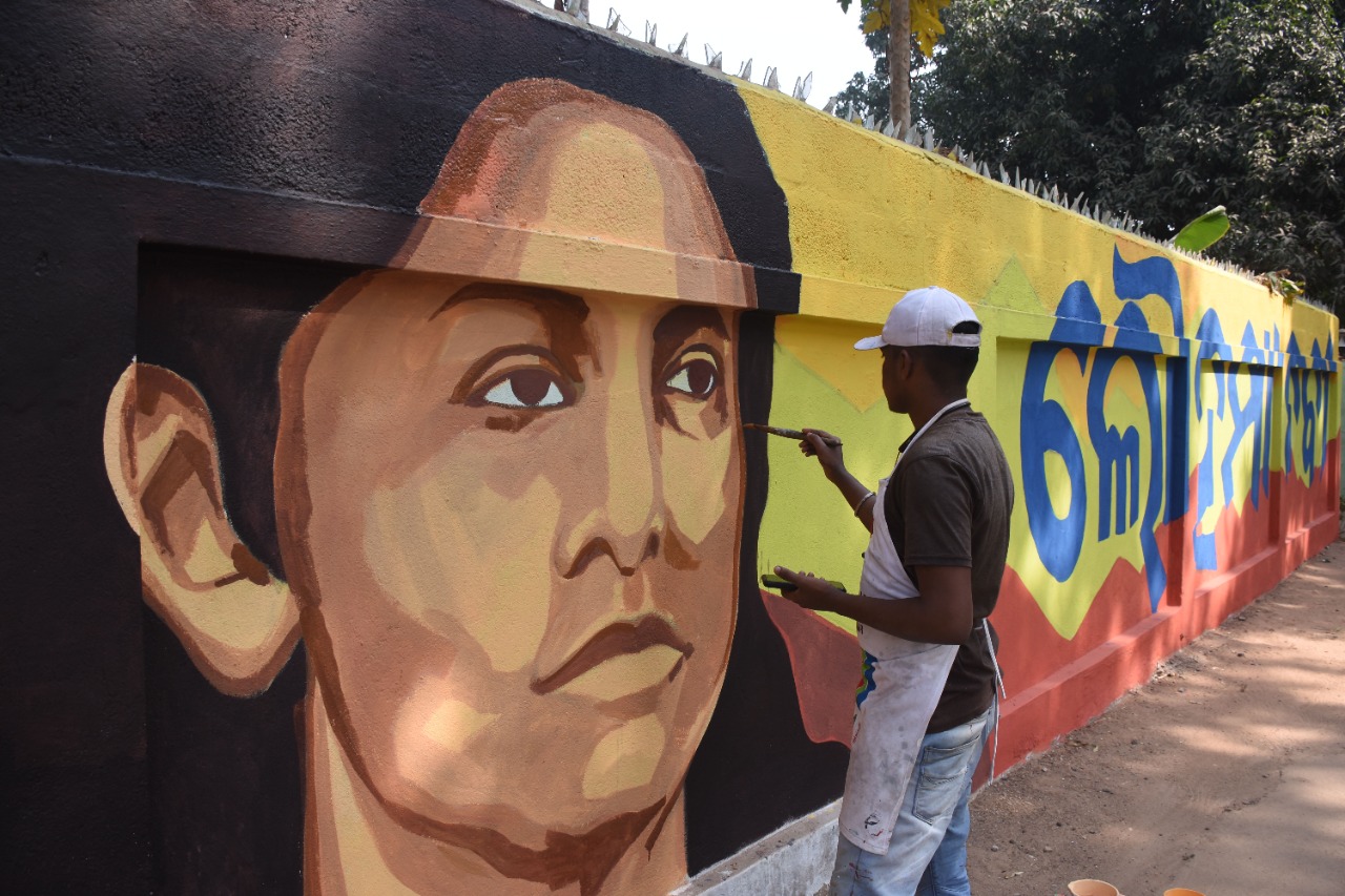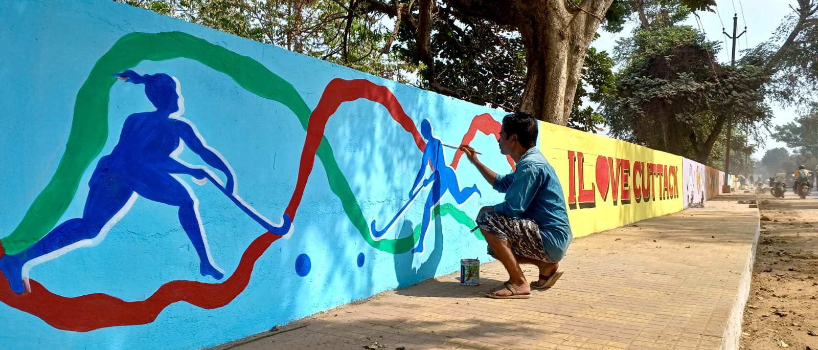 କଟକସ୍ଥିତ ବାରବାଟୀ ଷ୍ଟାଡିୟମରେ ହକି ବିଶ୍ୱକପ ଉଦ୍ଘାଟନୀ ସମାରୋହ ପୂର୍ବରୁ କଟକ ମହାନଦୀ ରିଙ୍ଗ ରୋଡ ନିକଟରେ ଜଣେ କଳାକାର କାନ୍ଥରେ ଚିତ୍ର ଆଙ୍କୁଛନ୍ତି ବି.କେ କଲେଜ ଅଫ୍ ଆର୍ଟ ଆଣ୍ଡ କ୍ରାଫ୍ଟର ଜଣେ ଛାତ୍ର ଭୁବନେଶ୍ୱରର ପିଏମଜି ସ୍କୋୟାରରେ ଓଡିଶାର ପୂର୍ବତନ ମୁଖ୍ୟମନ୍ତ୍ରୀ ନନ୍ଦିନୀ ଶତପଥୀଙ୍କ ଚିତ୍ର ଆଙ୍କୁଛନ୍ତି