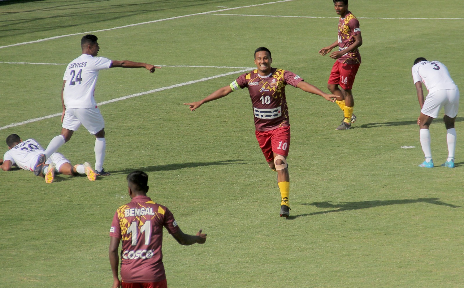 ଭୁବନେଶ୍ୱରର କ୍ୟାପିଟାଲ ଗ୍ରାଉଣ୍ଡରେ ୱେଷ୍ଟବେଙ୍ଗଲ ଏବଂ ସର୍ଭିସ ମଧ୍ୟରେ ସନ୍ତୋଶ ଟ୍ରଫି ଫୁଟବଲ ଟୁର୍ନାମେଣ୍ଟ ଅନୁଷ୍ଠିତ ହୋଇଯାଇଛି ରହି ମ୍ୟାଚକୁ ସର୍ଭିସ ୨-୧ ରେ ଜିତିନେଇଛି