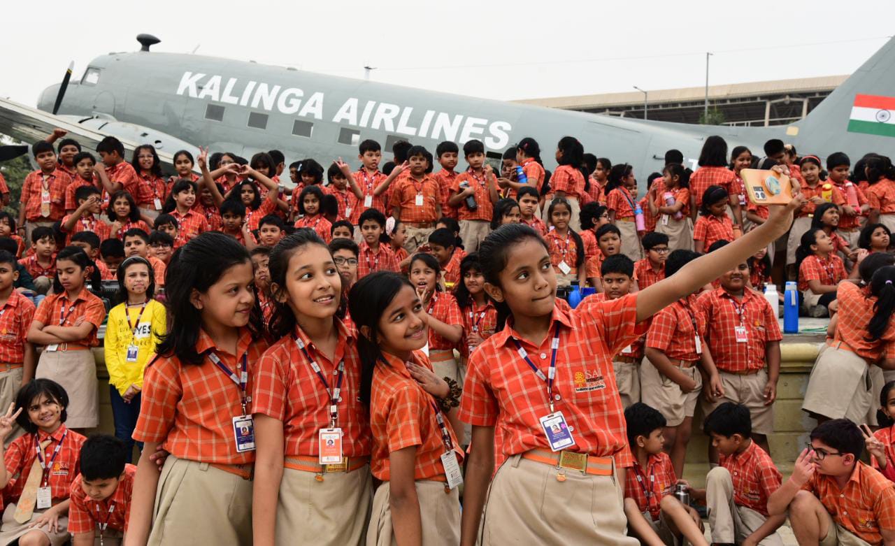 ସାଇ ଇଣ୍ଟେରନେସନାଲ ସ୍କୁଲ ର ଛାତ୍ରୀଛାତ୍ରମାନେ ଭୁବନେଶ୍ୱର ବିମାନବନ୍ଦର ରେ ଡାକୋଟା ବିମାନକୁ ଦେଖୁଛନ୍ତି ଏବଂ ଫୋଟୋ ଉଠାଉଛନ୍ତି