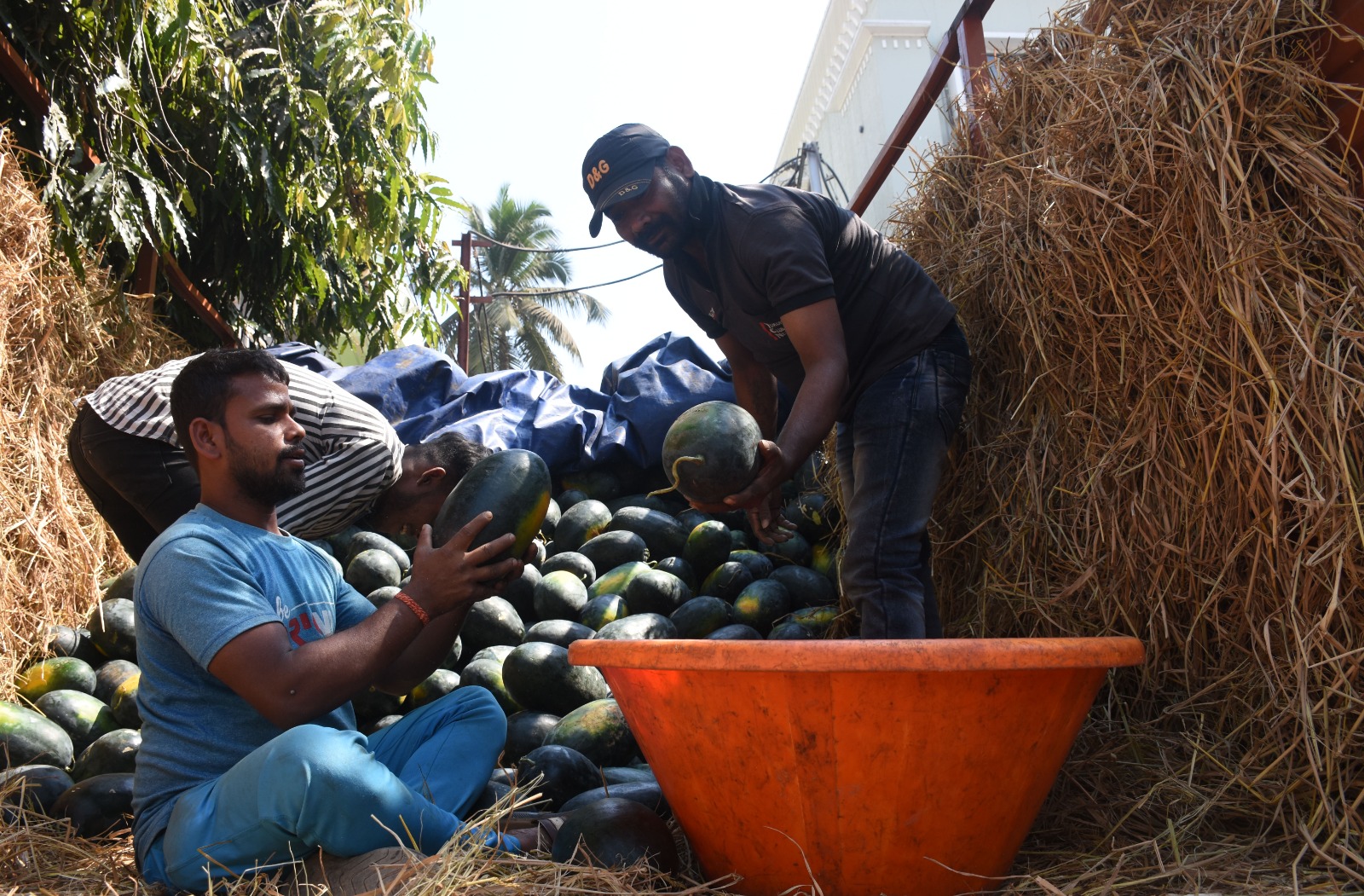 ରାଦିନ ଆସିଗଲା .ଅଶୋକନଗରରେ ଏକ ଗୋଦାମରେ ଟ୍ରକ ରୁ ଲୋକ ମାନେ ତରଭୁଜ କୁ ନେଇ ଗୋଦାମ କୁ ନେଉଛନ୍ତି