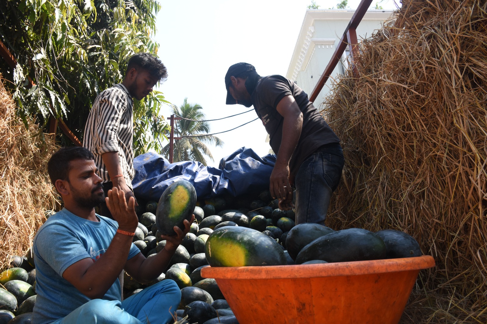ରାଦିନ ଆସିଗଲା .ଅଶୋକନଗରରେ ଏକ ଗୋଦାମରେ ଟ୍ରକ ରୁ ଲୋକ ମାନେ ତରଭୁଜ କୁ ନେଇ ଗୋଦାମ କୁ ନେଉଛନ୍ତି