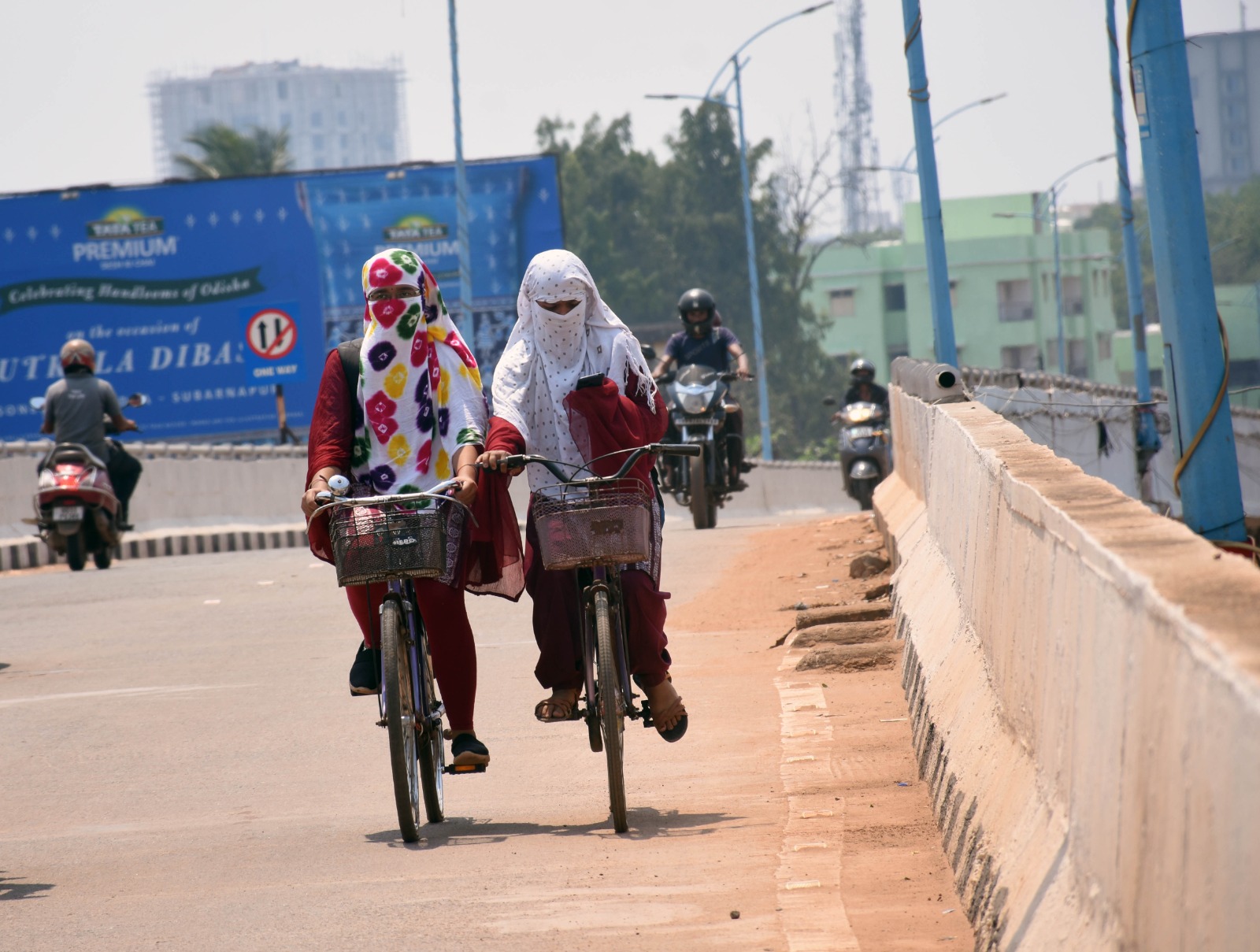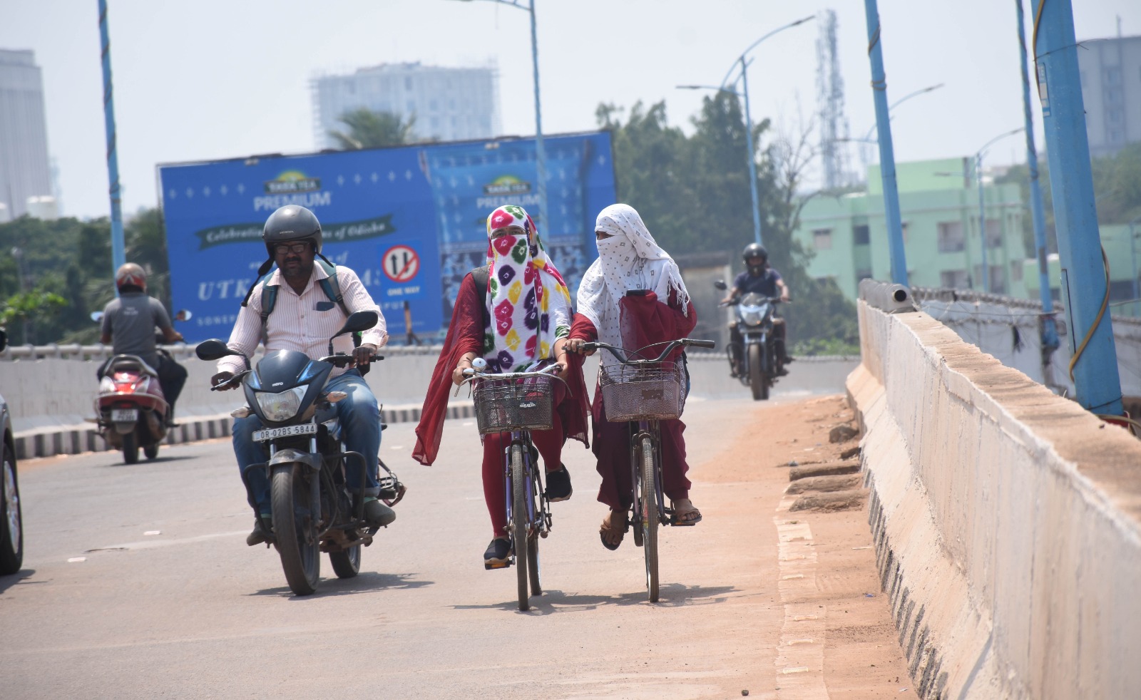 ରାଜଧାନୀରେ ପ୍ରବଳ ଖରାରେ ସହୀଦ ନଗର ଓଭର ବ୍ରିଜ ଉପରେ ୨ ଜଣ ଯୁବତୀ ମୁହଁରେ ଓନି ବାନ୍ଧି ସାଇକେଲରେ ଯାଉଛନ୍ତି