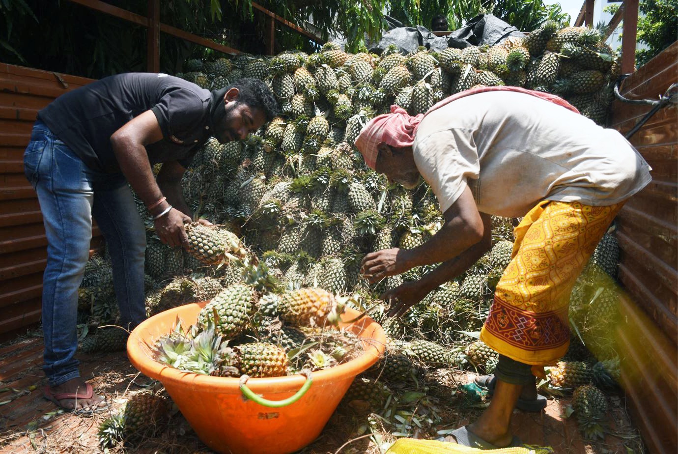 ଅଶୋକନଗର ଫଳ ଗୋଦାମରେ କେରଳରୁ ଆସିଥିବା ସପୁରି କୁ ଲୋକମାନେ ଅନଲୋଡ଼ କରୁଛନ୍ତି