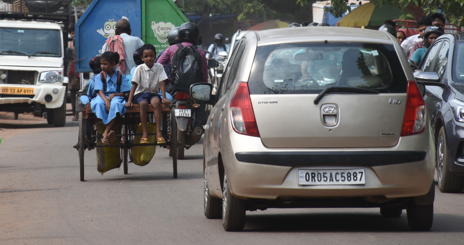 ଭୁବନେଶ୍ୱର ଝାରପଡା ଜେଲ ରାସ୍ତାରେ ଟଲିରେ ବସି ପିଲାମାନେ ପାଠପଢିବାକୁ ସ୍କୁଲ ଯାଉଛନ୍ତି
