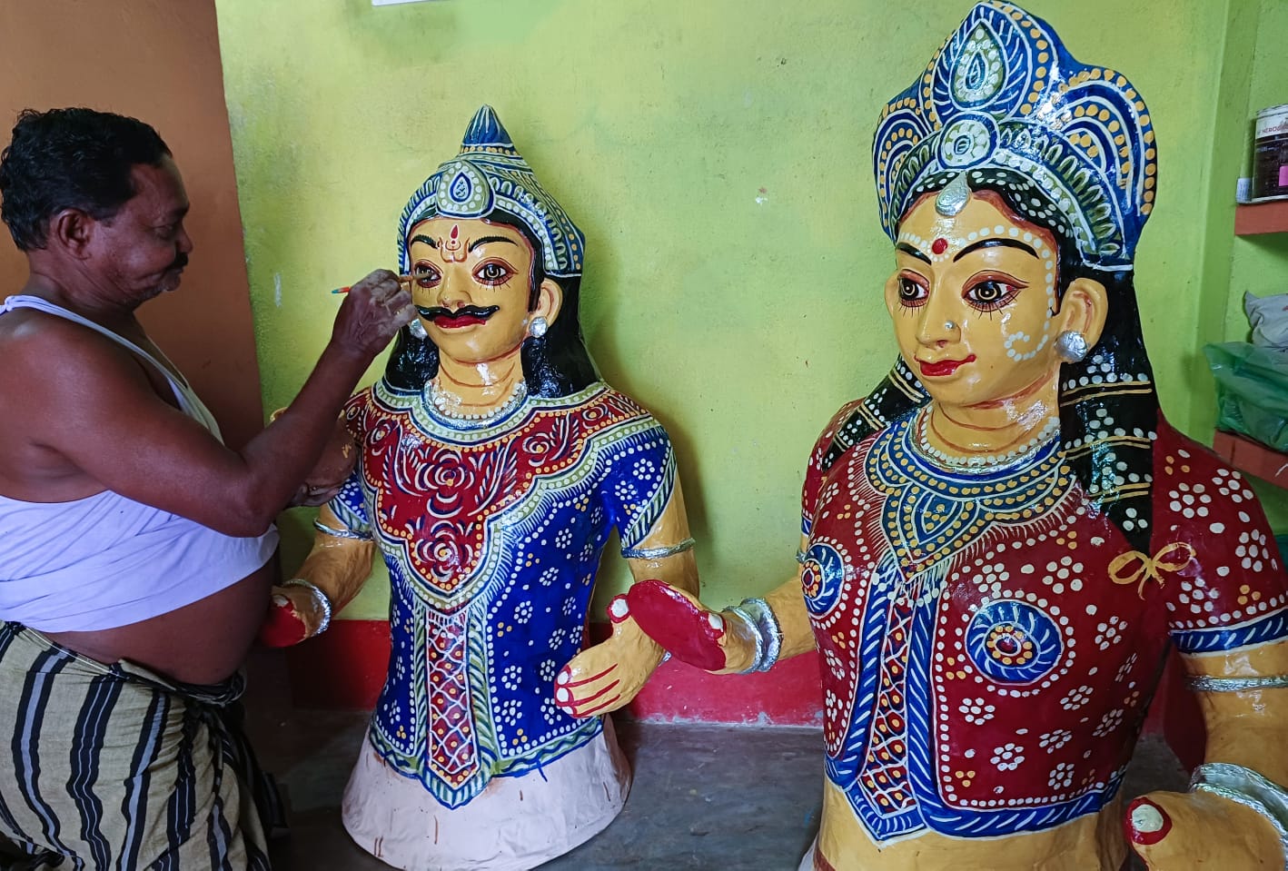 କାଠଗଡ଼ା ସାହି ରଣାସାହିରେ ପଂଚୁ ଦୋଳ ଓ ଦୋଳ ବିମାନ ମେଳଣ ପାଇଁ ଶିଳ୍ପୀଙ୍କ ଦ୍ୱାରା ପ୍ରସ୍ତୁତ କରାଯାଉଥିବା ପାରମ୍ପରିକ କେଳା କେଳୁଣୀ ଓ ରାଜା ରାଣୀ ମୁଖ