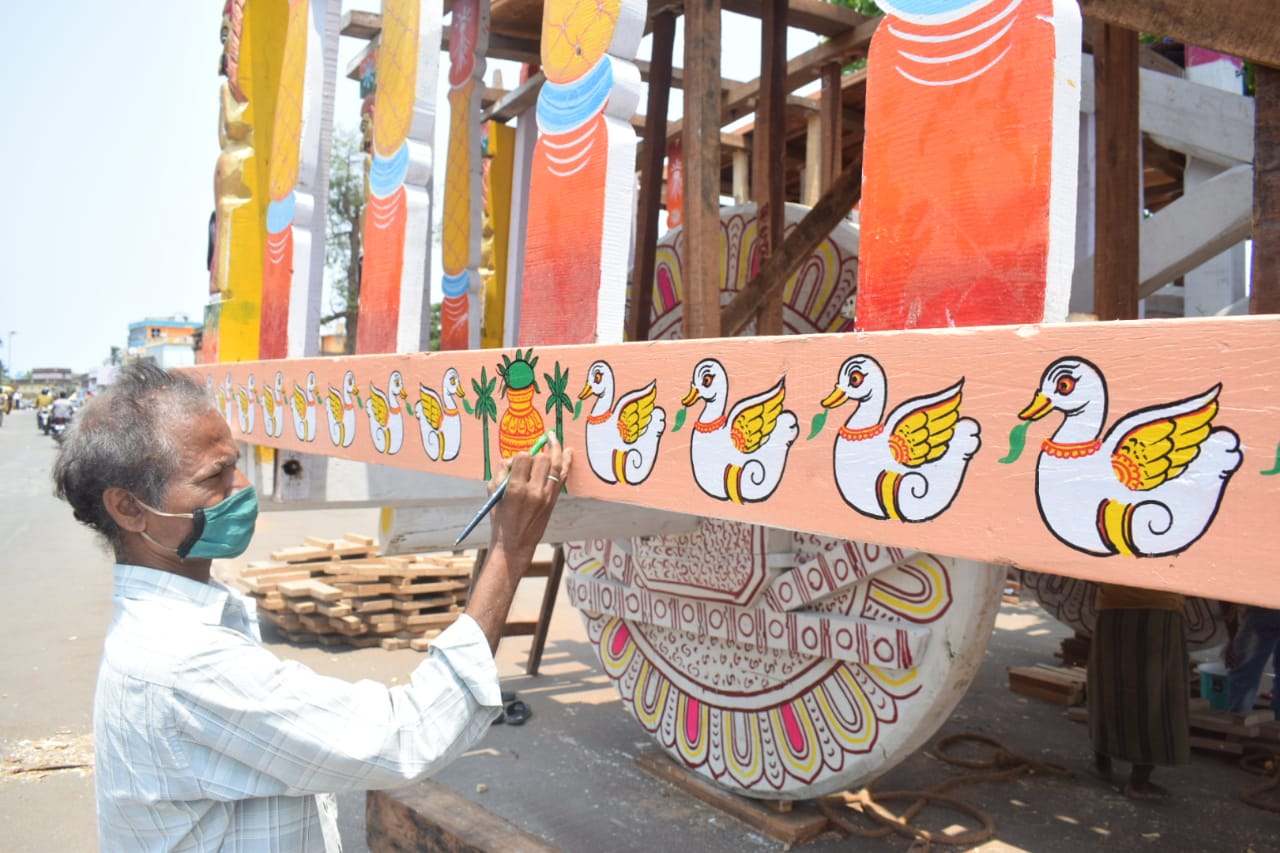 ଜଣେ ଶିଳ୍ପୀ ରୁକୁଣା ରଥ ରେ ଚିତ୍ର ଆଙ୍କୁଛନ୍ତି