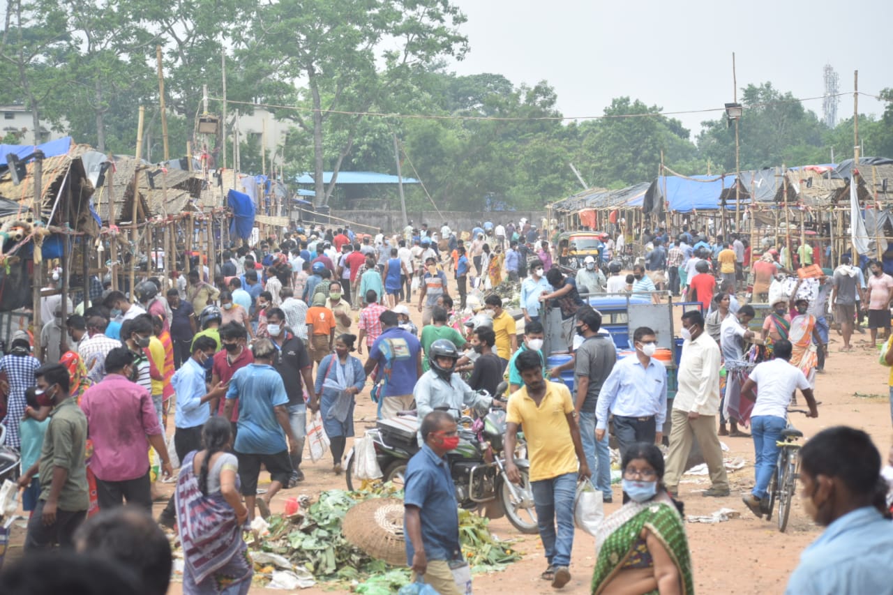 କରୋନା କଟକଣା କୁ ନ ମାନି ୟୁନିଟ ୧ ମାର୍କେଟ ରେ ପ୍ରବଳ ଭିଡ