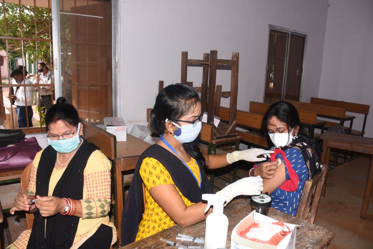 3-ୟୁନିଟ-୧ ମହିଳା ଉଚ୍ଚବିଦ୍ୟାଳୟ ୨ୟ ଡୋଜ ଟୀକା ଦିଆଯାଉଛି