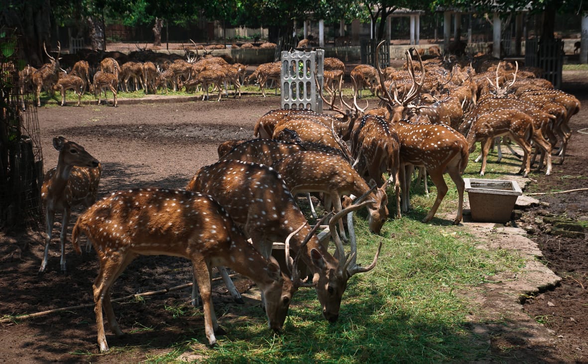 ତୁଳସୀପୁର ଡ଼ିଅର ପାର୍କ ପରିସର ରେ ଘାସ ଖାଉଥିବା ହରିଣ ମାନେ