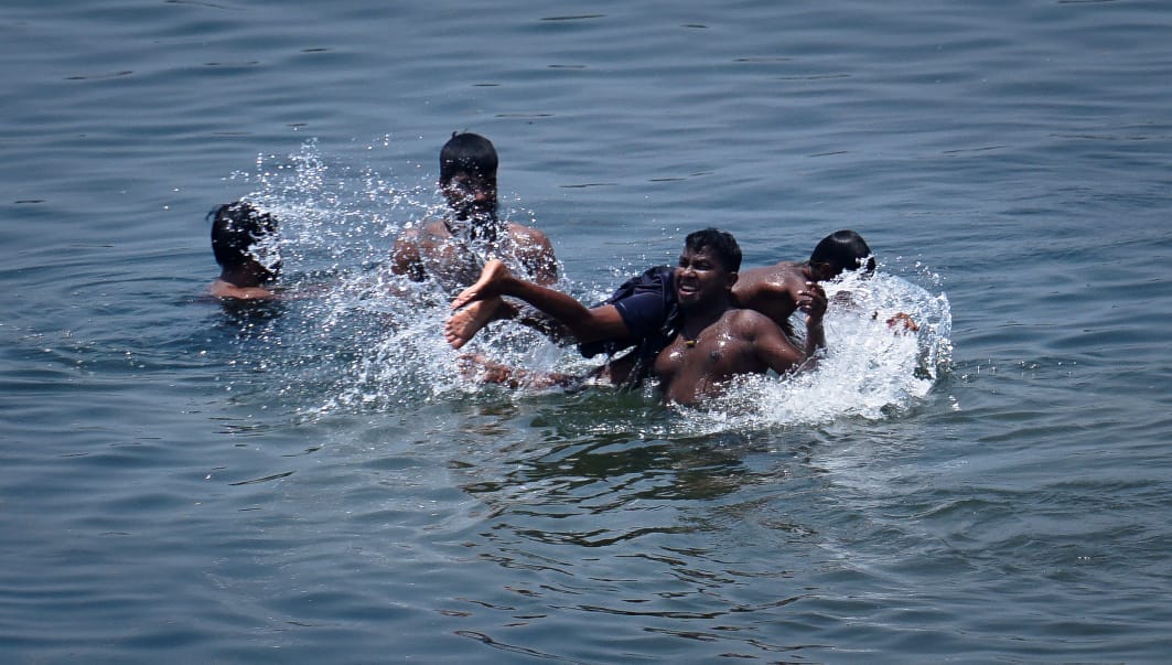 ଜୋବ୍ରା ରେଳୱେ ବ୍ରିଜ୍ ତଳେ ମହାନଦୀ ତଟରୁ ନଦୀର ମଧ୍ୟଭାଗକୁ ଛଡ଼ାଯାଉଥିବା ଆବରଜନାପାଣି ବାରବାଟୀ ଷ୍ଟାଡିୟମ୍ ଠାରେ ପାଣି ଛିଞ୍ଚନ କରାଯାଉଛି