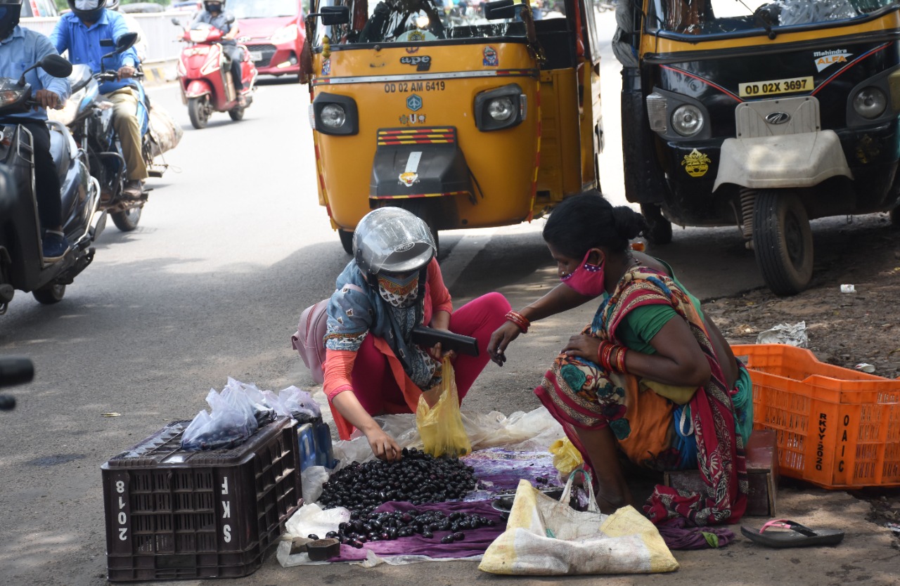 କଳ୍ପନା ଛକରେ ଜଣେ ଯୁବତୀ ଜାମୁକୋଳି କିଣୁଛନ୍ତି