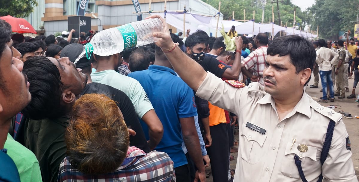 କଟକ ଡିସିପି ପିନାକ ମିଶ୍ର ଭାରତ ବନାମ ଦକ୍ଷିଣ ଆଫ୍ରିକା ଟି -୨୦ କ୍ରିକେଟ୍ ମ୍ୟାଚ୍ ଟିକେଟ୍ ପାଇଁ ଅପେକ୍ଷା କରିଥିବା ଲୋକମାନଙ୍କୁ ଜଳ ଯୋଗାଉଛନ୍ତି