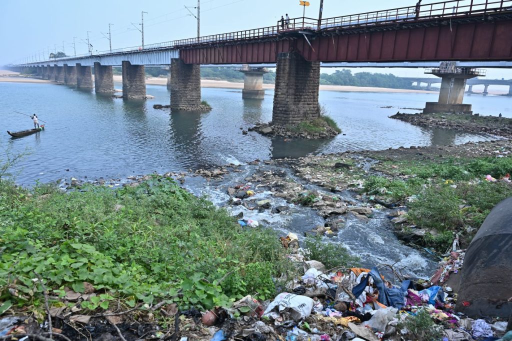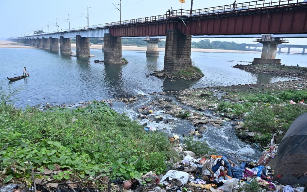 ଜୋବ୍ରା ରେଳୱେ ବ୍ରିଜ୍ ତଳେ ମହାନଦୀ ତଟରୁ ନଦୀର ମଧ୍ୟଭାଗକୁ ଛଡ଼ାଯାଉଥିବା ଆବରଜନାପାଣି ବାରବାଟୀ ଷ୍ଟାଡିୟମ୍ ଠାରେ ପାଣି ଛିଞ୍ଚନ କରାଯାଉଛି