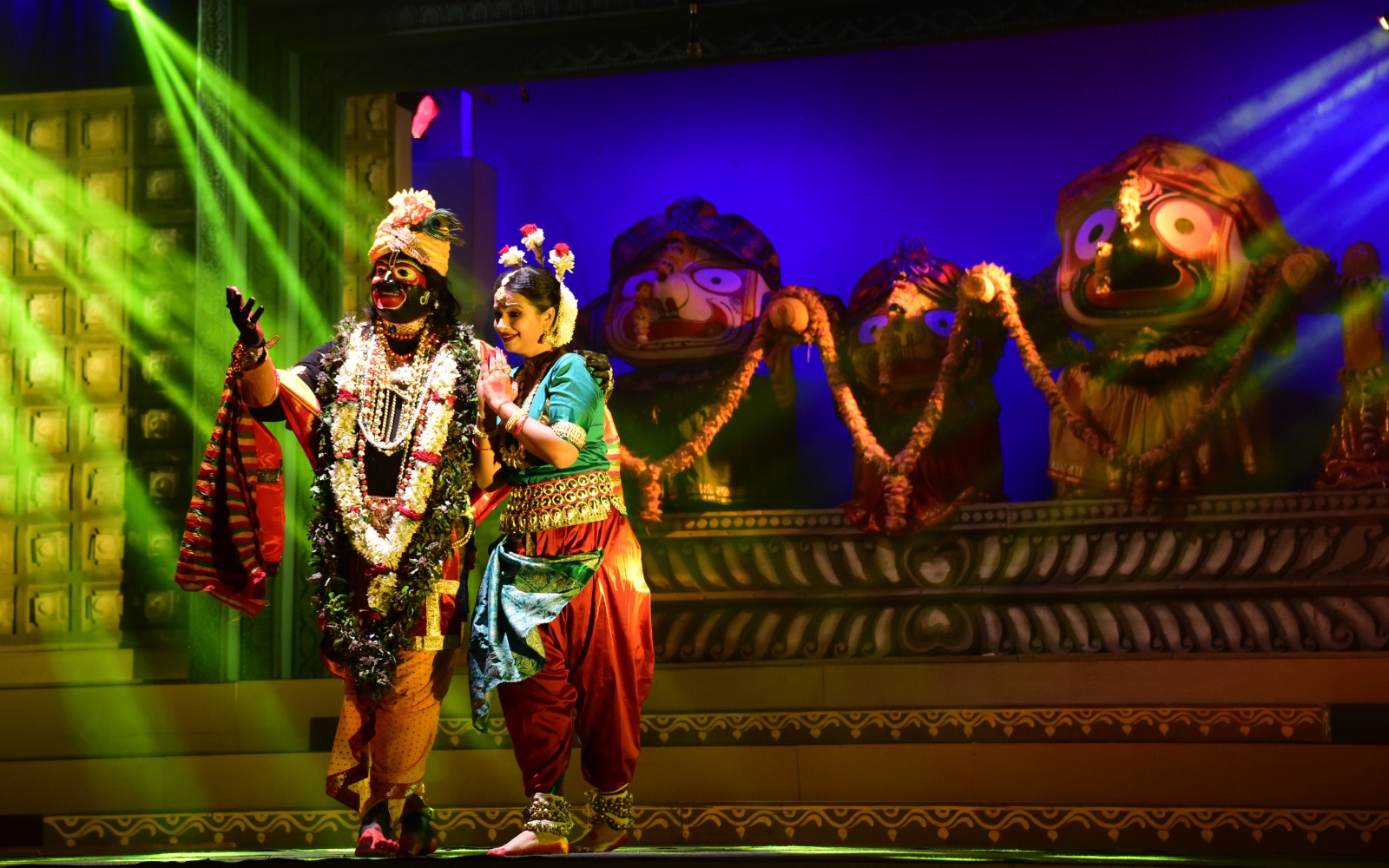ଭୁବନେଶ୍ୱର ରବୀନ୍ଦ୍ର ମଣ୍ଡପରେ କଳାକାରମାନେ ନାଟକ ‘ଦେବଦାସୀ’ ପରିବେଷଣ କରୁଛନ୍ତି