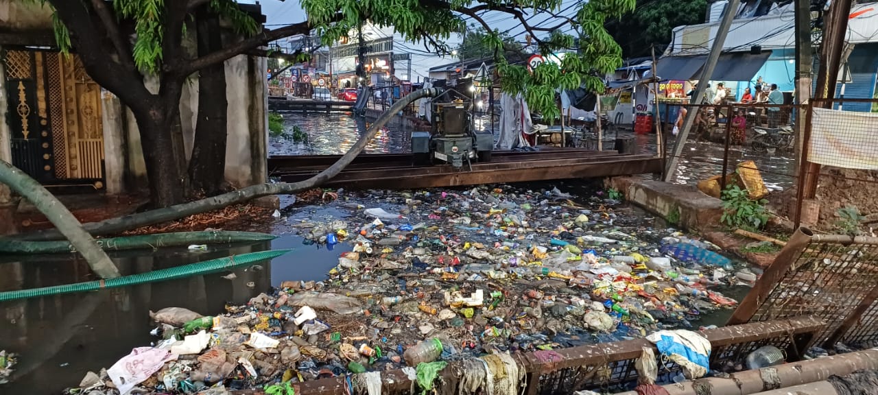 ଜୋବ୍ରା ରେଳୱେ ବ୍ରିଜ୍ ତଳେ ମହାନଦୀ ତଟରୁ ନଦୀର ମଧ୍ୟଭାଗକୁ ଛଡ଼ାଯାଉଥିବା ଆବରଜନାପାଣି ବାରବାଟୀ ଷ୍ଟାଡିୟମ୍ ଠାରେ ପାଣି ଛିଞ୍ଚନ କରାଯାଉଛି