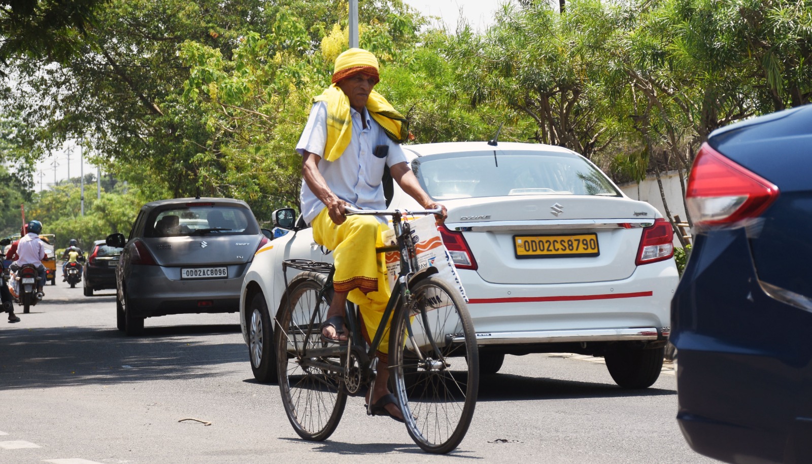 ଖରାକୁ ନାହିଁ ଖାତିର: ଭୁବନେଶ୍ୱରରେ ପ୍ରବଳ ଖରା ସାଙ୍ଗକୁ ଗୁଳୁଗୁଳି ଅନୁଭୂତ ହେଉଥିବା ସତ୍ତ୍ୱେ ଖରାବେଳେ ମୁଣ୍ଡରେ ପଗଡ଼ି ବାନ୍ଧି ସାଇକେଲରେ ଯାଉଛନ୍ତି ଜଣେ ବୟସ୍କ ବ୍ୟକ୍ତି