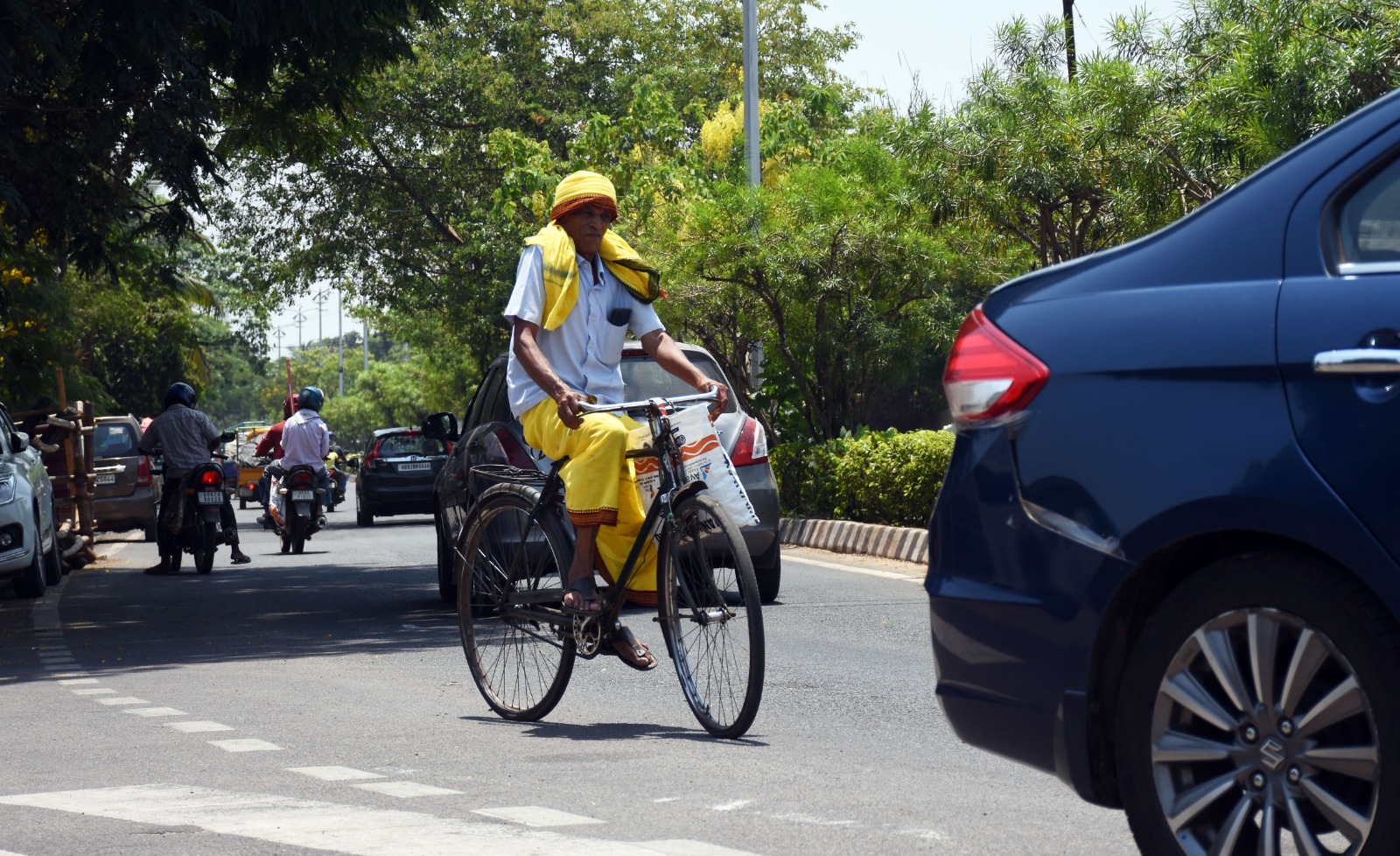 ଖରାକୁ ନାହିଁ ଖାତିର: ଭୁବନେଶ୍ୱରରେ ପ୍ରବଳ ଖରା ସାଙ୍ଗକୁ ଗୁଳୁଗୁଳି ଅନୁଭୂତ ହେଉଥିବା ସତ୍ତ୍ୱେ ଖରାବେଳେ ମୁଣ୍ଡରେ ପଗଡ଼ି ବାନ୍ଧି ସାଇକେଲରେ ଯାଉଛନ୍ତି ଜଣେ ବୟସ୍କ ବ୍ୟକ୍ତି