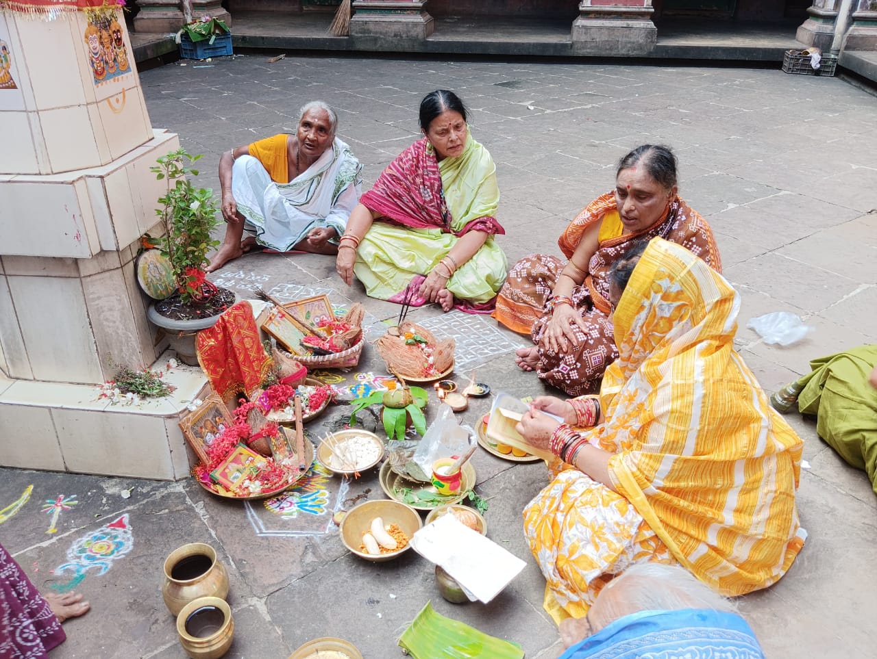 ପବିତ୍ର କାର୍ତ୍ତିକ ମାସ ଆରମ୍ଭରେ ପୁରୁଣା ଭୁବନେଶ୍ୱରର ଏକ ଧର୍ମଶାଳାରେ ହବିଷ୍ୟାଳିମାନେ ମା’ ବୃନ୍ଦବତୀଙ୍କୁ ପୂଜା କରୁଛନ୍ତି
