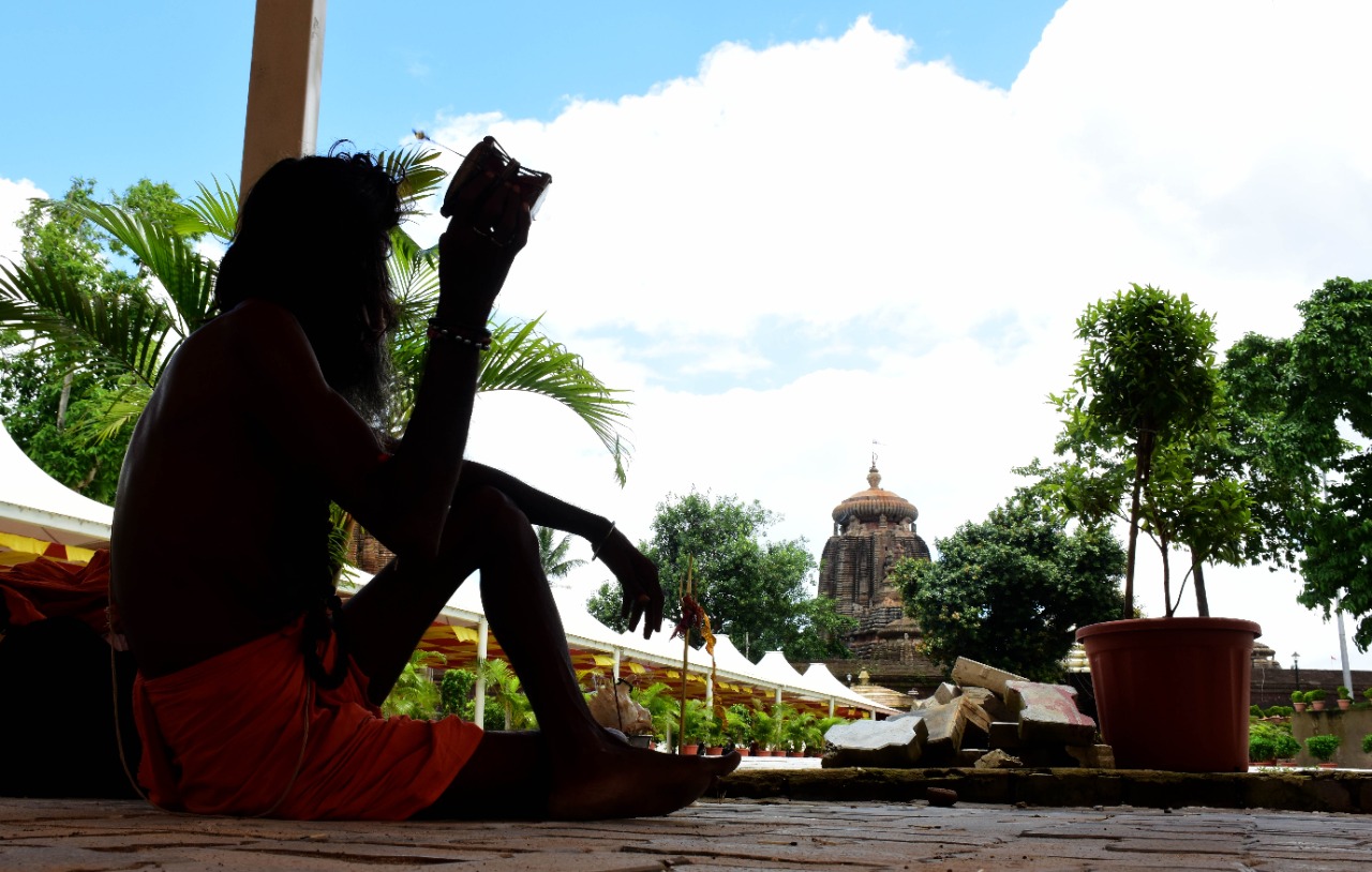 ଶ୍ରାବଣ ମାସର ସଂକ୍ରାନ୍ତିରେ ଜଣେ ସାଧୁ ଲିଙ୍ଗରାଜ ମନ୍ଦିର ନିକଟରେ ବସିଛନ୍ତି