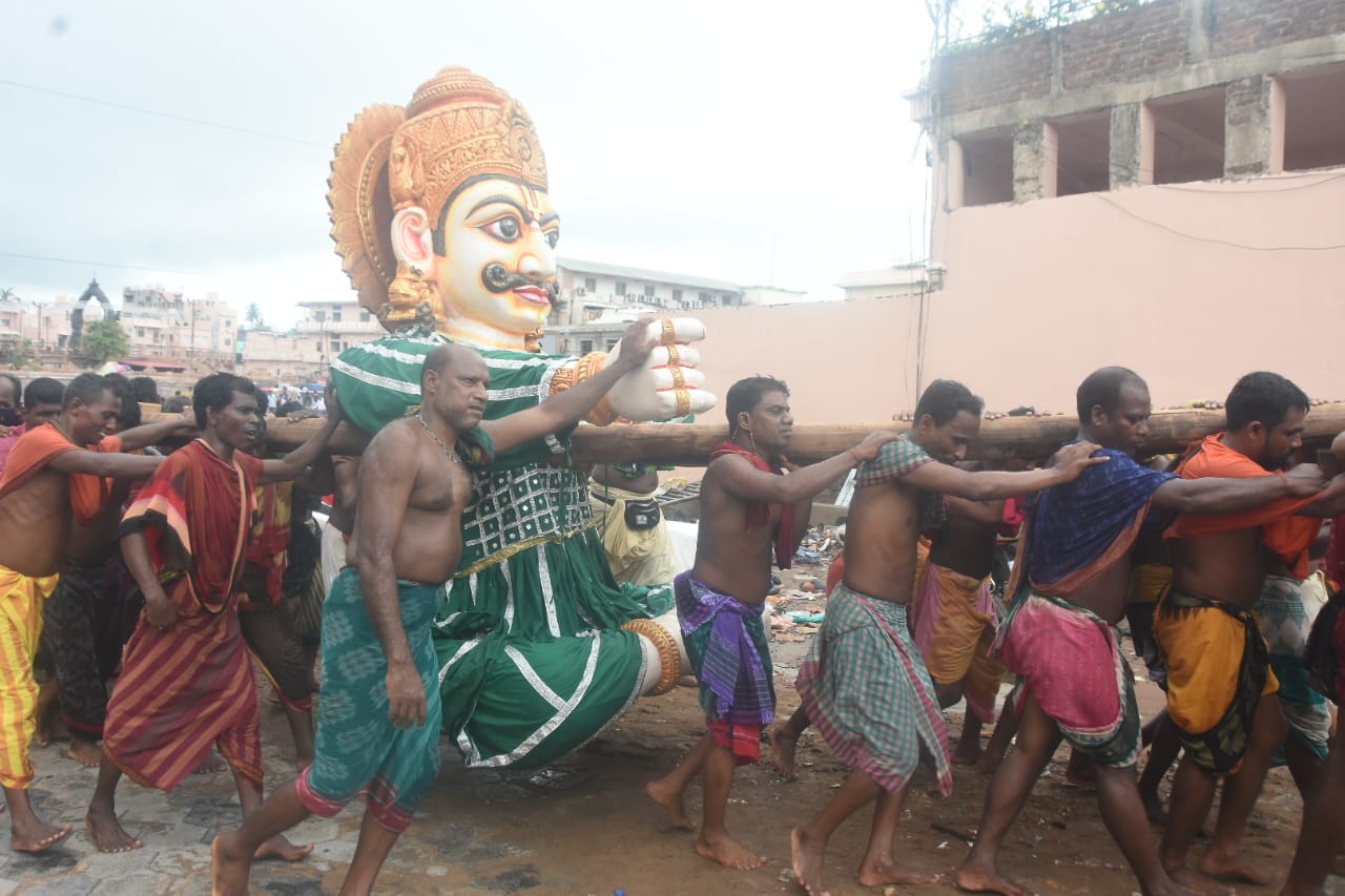 ପୁରୀରେ ରଥର ସାରଥୀଙ୍କୁ ରଥରୁ ଓହ୍ଲାଇ ଭୋଇ ସେବକ ମାନେ ନେଉଛନ୍ତି