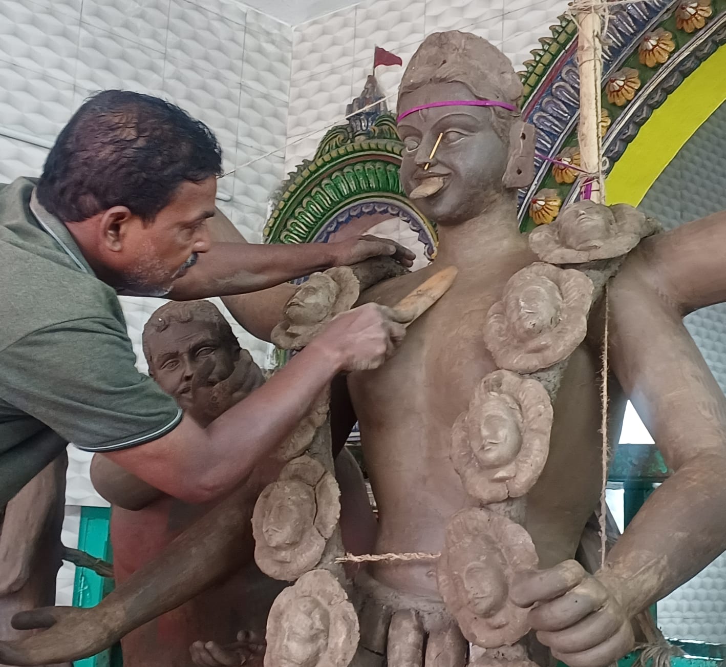 କଟକ ଶେଖବଜାର ପୂଜାମଣ୍ଡପରେ ମା’ ଶ୍ୟାମାକାଳୀଙ୍କ ମୃଣ୍ମୟୀ ପ୍ରତିମା ଗଢ଼ିବାରେ ନିମଗ୍ନ ଶିଳ୍ପୀ