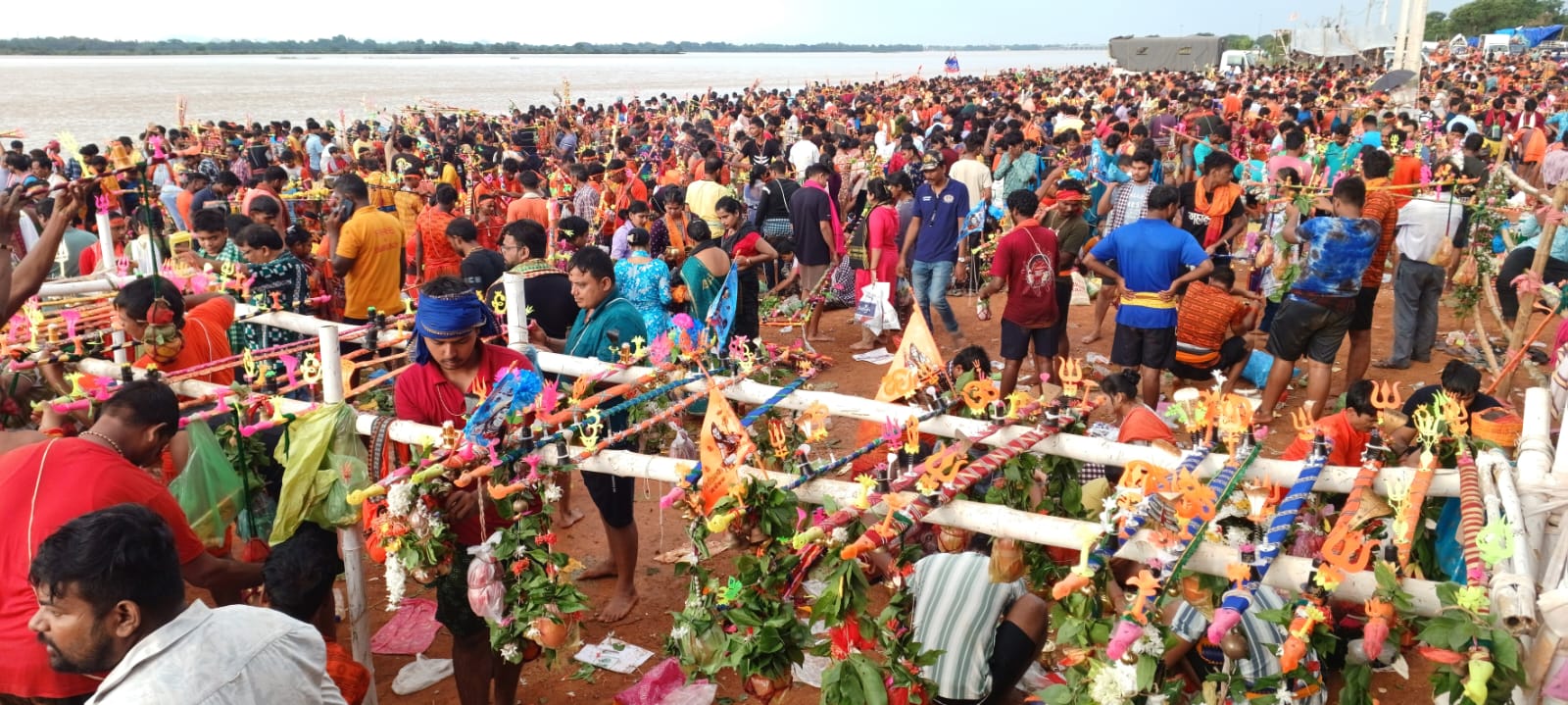 ଶ୍ରାବଣ ମାସର ତୃତୀୟ ସୋମବାର ଉପଲକ୍ଷେ, କଟକ ଗଡ଼ଗଡିଆ ଘାଟରେ କାଉଡିଆମାନଙ୍କ ଭିଡ