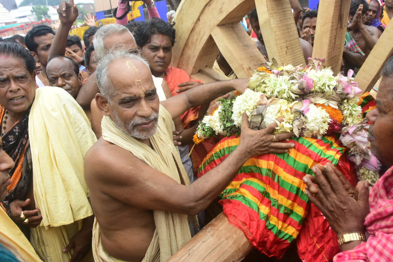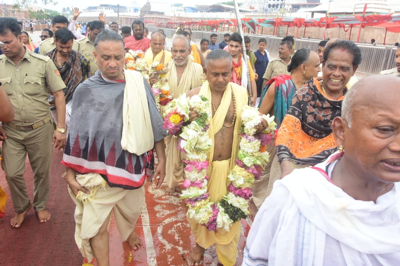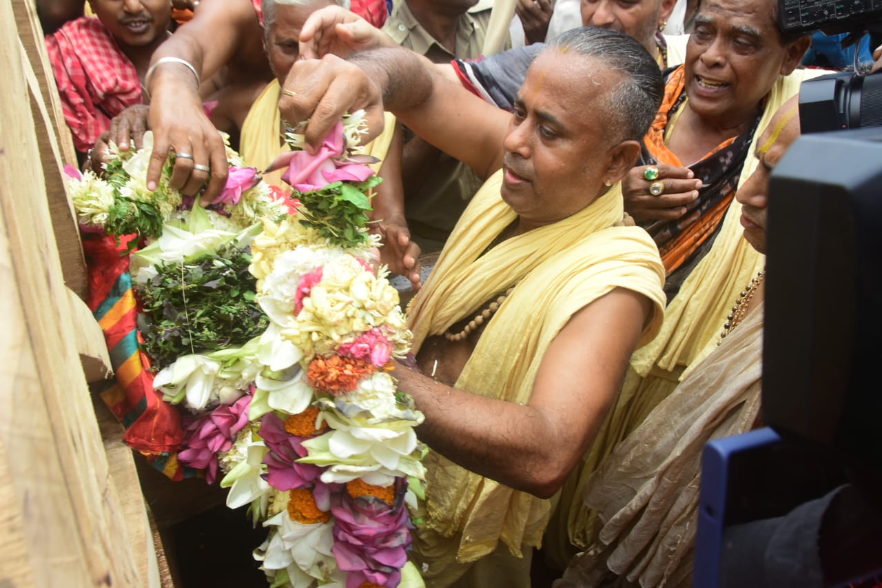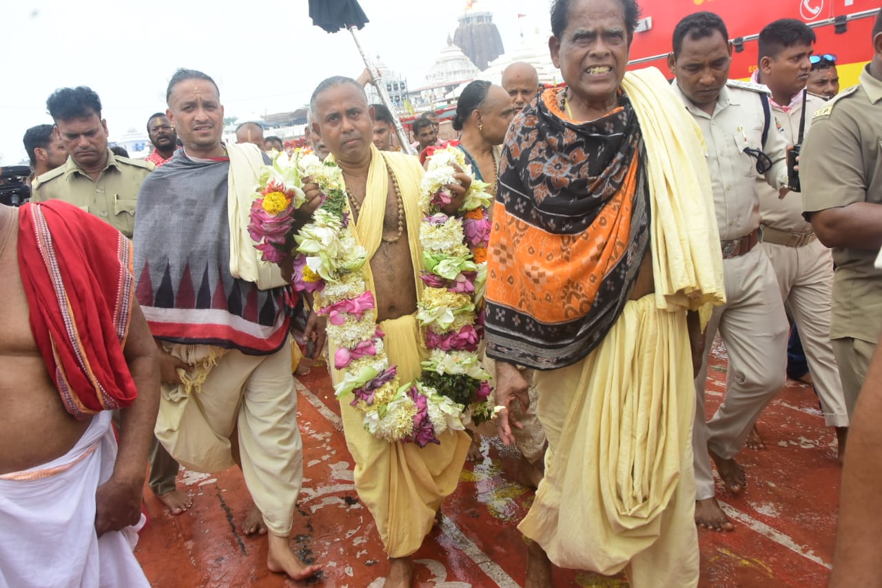 ରଥର ଅଖ ଚକ ସଂଯୋଗ ପାଇଁ ମହାପ୍ରଭୁଙ୍କ ଆଜ୍ଞାମାଳ ପୂଜାପଣ୍ଡା ସାମନ୍ତ ରଥଖଳାକୁ ନେଉଛନ୍ତି