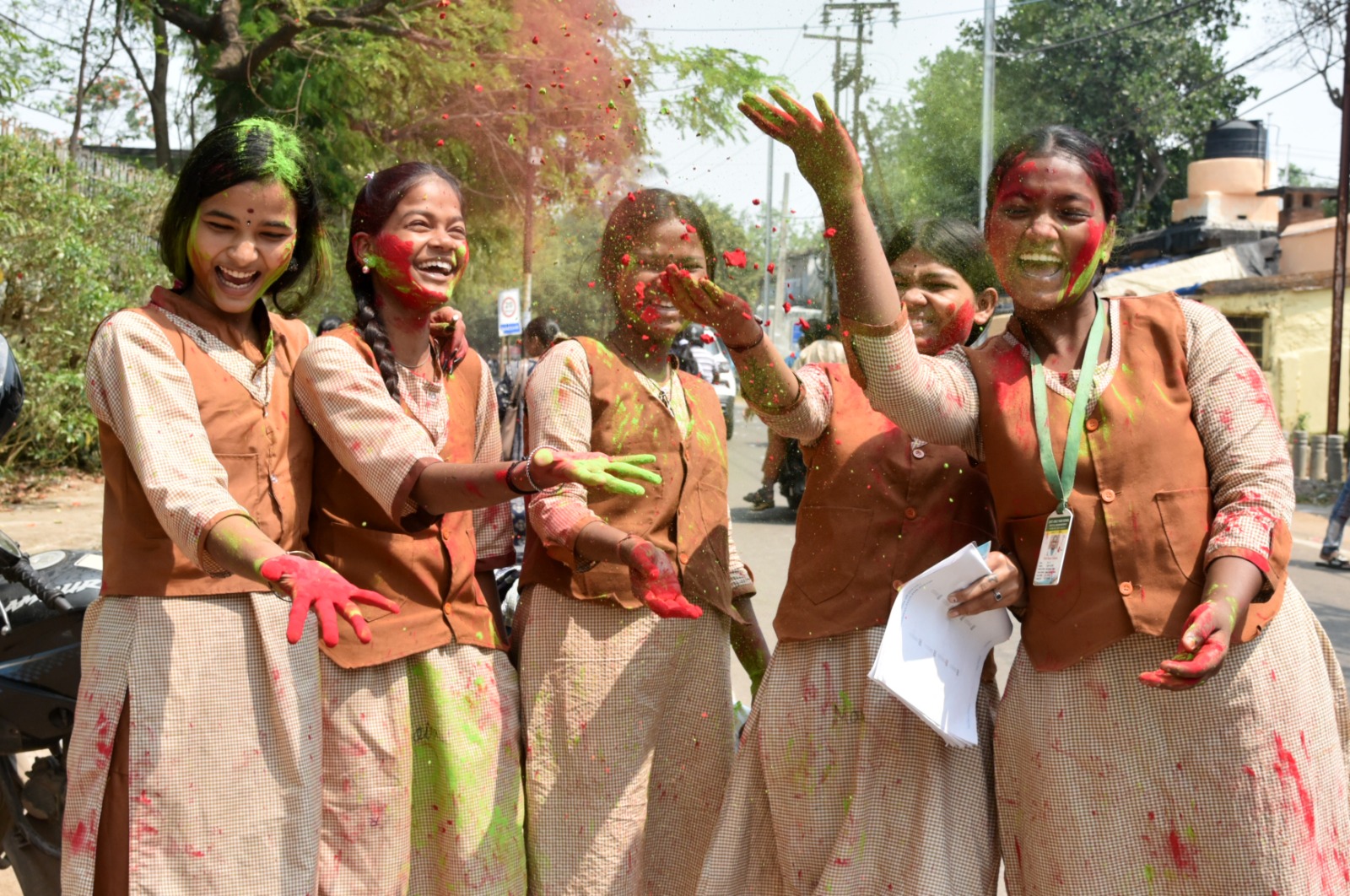 ଭୁବନେଶ୍ୱରରେ ମାଟ୍ରିକ୍ ପରୀକ୍ଷା ସରିବା ପରେ, ପରୀକ୍ଷାର୍ଥୀମାନେ ସେମାନଙ୍କ କେନ୍ଦ୍ର ସମ୍ମୁଖରେ ହୋଲି ପାଳନ କରୁଛନ୍ତି