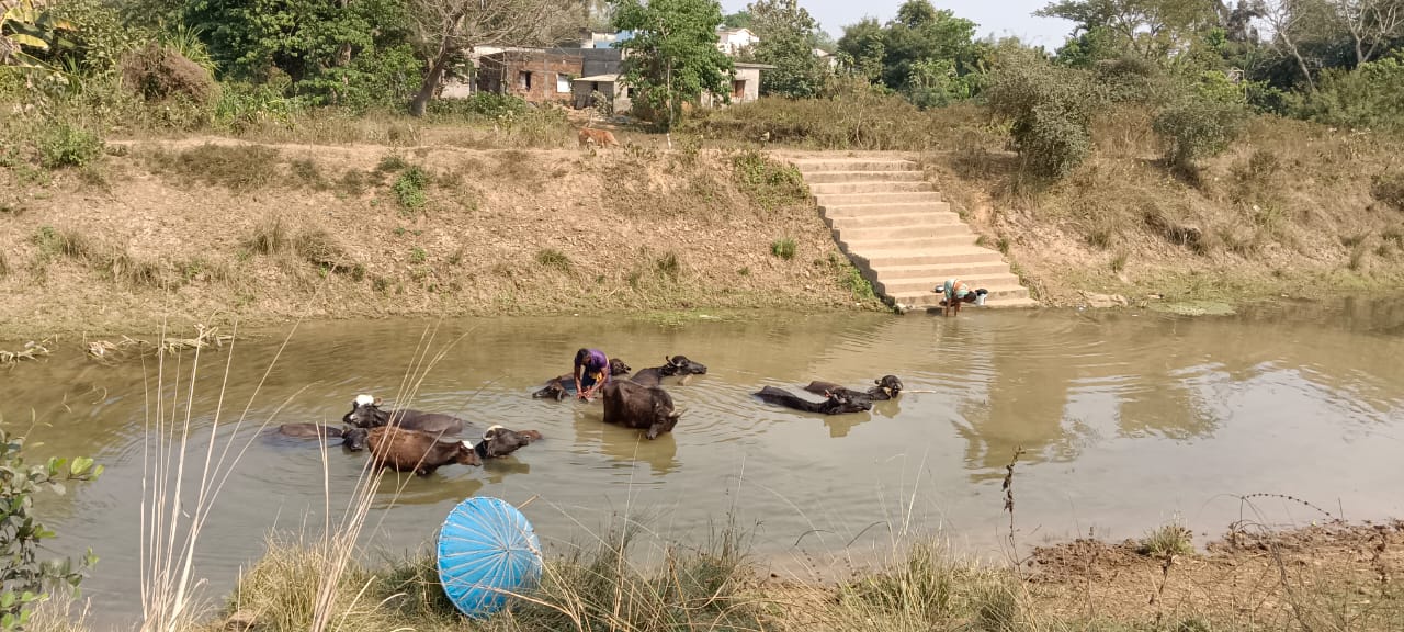 ଭୁବନେଶ୍ୱର ଉପକଣ୍ଠରେ ଥିବା ବାଲିଅନ୍ତା କେନାଲରେ ଜଣେଲୋକ ମଇଁଷି ମାନଙ୍କୁ ଗାଧେଇ ଦେଉଛନ୍ତି