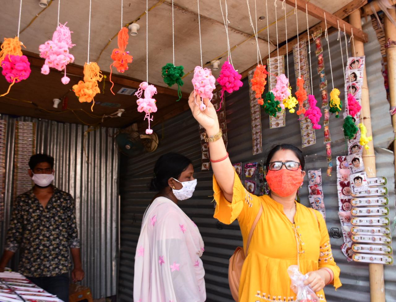 ରକ୍ଷା ବନ୍ଧନ ପାଇଁ ଭୁବନେଶ୍ୱର ର ଏକ ରାକ୍ଷୀ ଷ୍ଟଲରୁ ମହିଳା ମାନେ ରାକ୍ଷୀ କିଣୁଛନ୍ତି