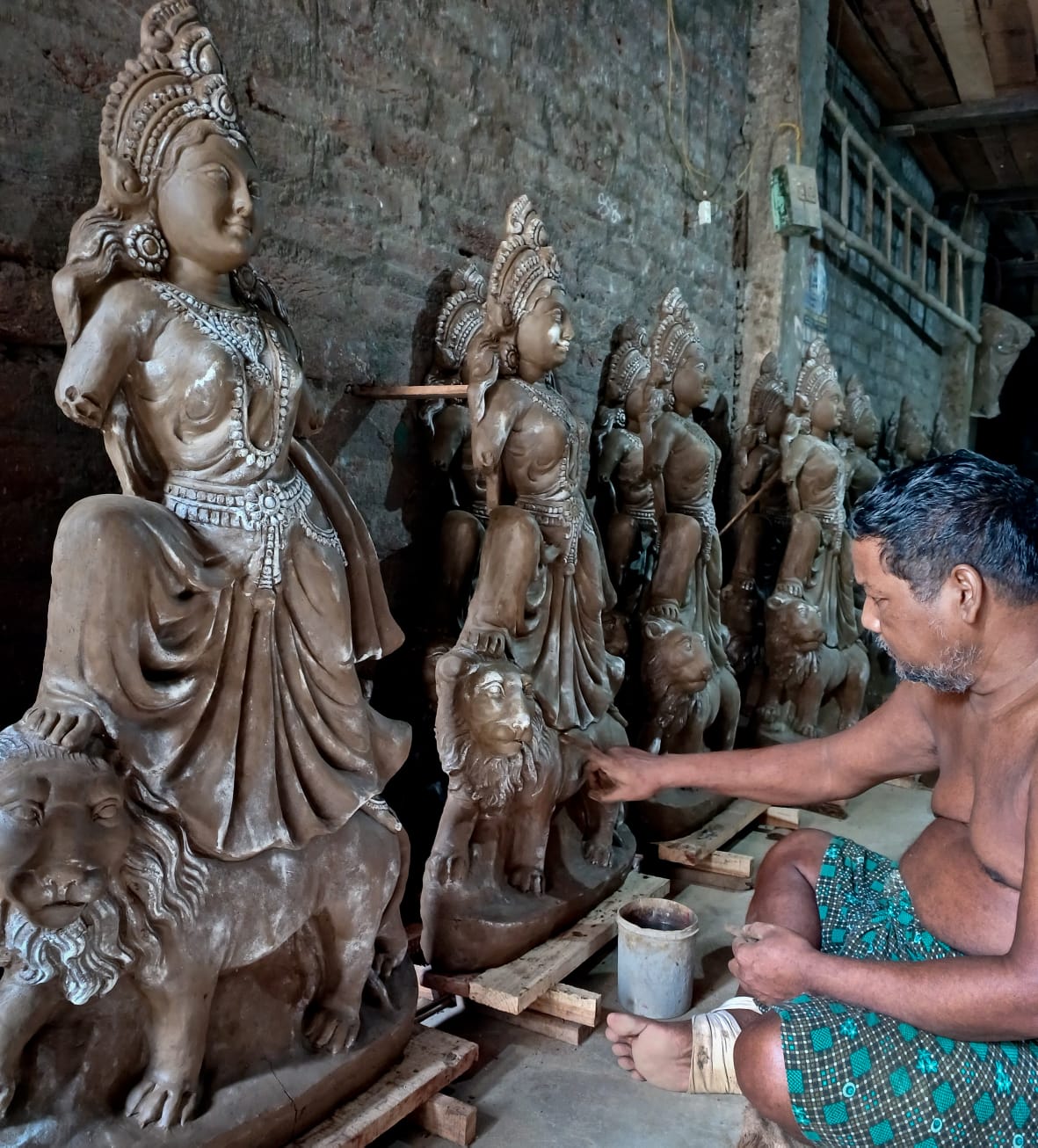 ଶିଳ୍ପୀ କୁମ୍ଭାର ସାହି ଅଂଚଳ ରେ ଖୁଦୁରୁକୁଣୀ ମୁର୍ମୟୀ ପ୍ରତିମା ଗଢୁଥିବା ଶିଳ୍ପୀ