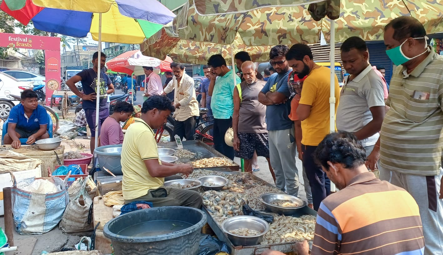ଗ୍ରାହକମାନେ କାର୍ତିକ ମାସ ଆରମ୍ଭ ହେବା ପୂର୍ବରୁ ଆମିଷ ବଜାରରେ ଲାଇନ୍ କରି ଛିଡାହୋଇଛନ୍ତି