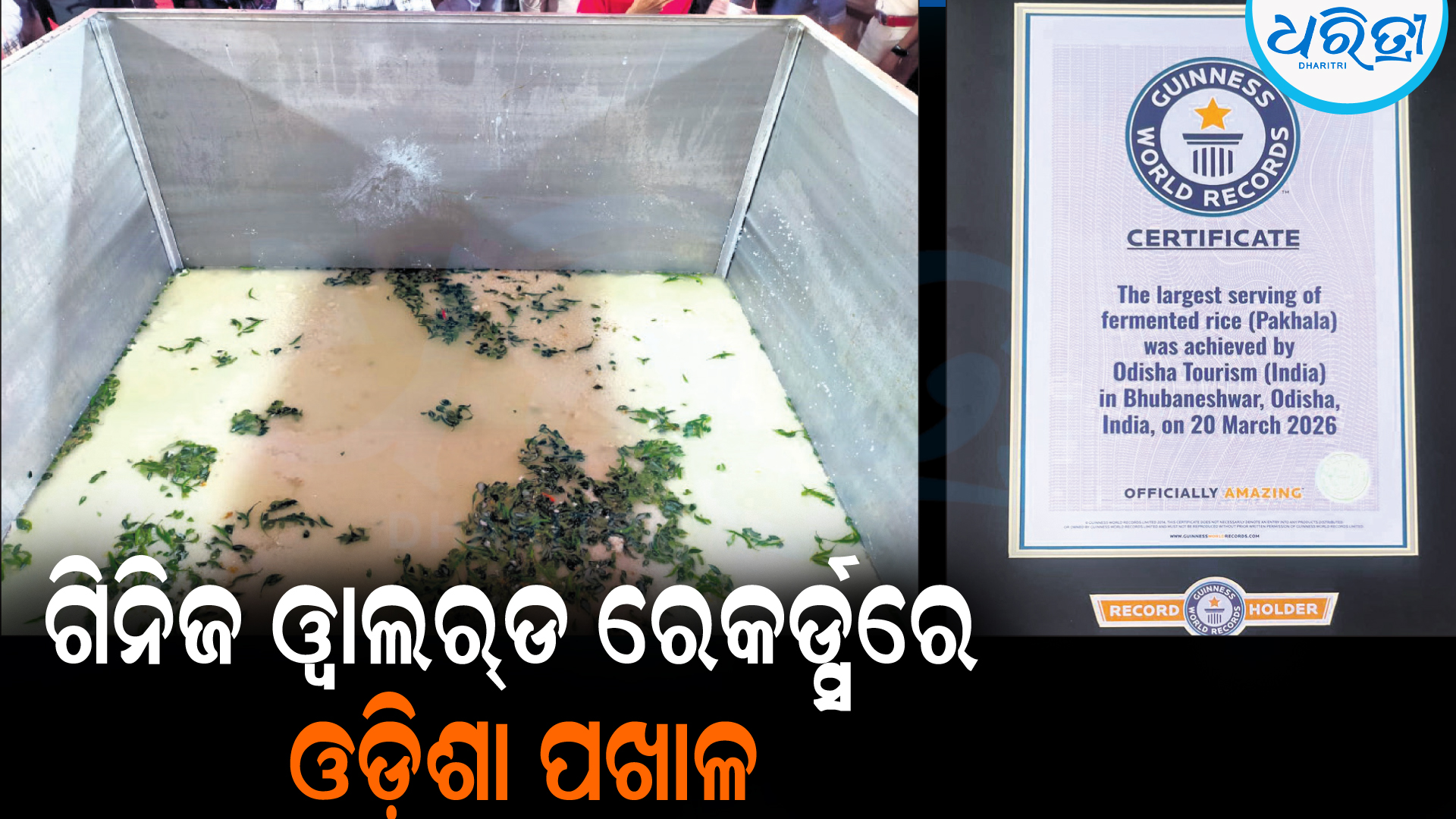 ଭୁବନେଶ୍ୱର,୨୧ା୩(ସୌମ୍ୟରଞ୍ଜନ ରାଉତ):ଓଡ଼ିଶା ପର୍ଯ୍ୟଟନ ବିଭାଗ ଏକ ଐତିହାସିକ ବିଶ୍ୱସ୍ତରୀୟ ସଫଳତା ହାସଲ କରିଛି। ୧,୧୭୭ କିଲୋଗ୍ରାମ ଓଜନର ପଖାଳ ପ୍ରସ୍ତୁତ କରିବା ସହ ଏକ ବିଶାଳ ପାତ୍ରରେ ଏହି ବୃହତ୍ତମ ଫର୍ମେଣ୍ଟେଡ ରାଇସ (ପଖାଳ) ପରିବେଷଣ ପାଇଁ ଗିନିଜ ୱାଲର୍ଡ ଅଫ୍ ରେକଡର୍ସରେ ସ୍ଥାନ ପାଇଛି। ବିଶ୍ୱ ପଖାଳ ଦିବସ ଅବସରରେ ଭୁବନେଶ୍ୱରସ୍ଥିତ ପାନ୍ଥ ନିବାସଠାରେ ଆୟୋଜିତ ରାଜ୍ୟସ୍ତରୀୟ ‘ପଖାଳ ପରବ’ରେ ୮୫୦ କେଜି ଚାଉଳରେ ଏହି ପଖାଳ ପ୍ରସ୍ତୁତ କରାଯାଇଥିଲା। ବିଭାଗ ପକ୍ଷରୁ କୁହାଯାଇଛି, ଏହି ଅସାଧାରଣ କୃତି କେବଳ ଓଡ଼ିଶାର ସମୃଦ୍ଧ ରନ୍ଧନ ଶୈଳୀ ଓ ପରମ୍ପରାକୁ ସମ୍ମାନିତ କରୁନାହିଁ, ବରଂ ଓଡ଼ିଆ ସଂସ୍କୃତି ଓ ଦୈନନ୍ଦିନ ଜୀବନ ସହ ଜଡ଼ିତ ଆମର ପ୍ରିୟ ‘ପଖାଳ’କୁ ଅନ୍ତର୍ଜାତୀୟ ସ୍ତରରେ ନୂଆ ପରିଚୟ ଦେଇଛି। ଏହି ସଫଳତା ଓଡ଼ିଶାର ଦେଶୀ ଖାଦ୍ୟ ପରମ୍ପରାକୁ ବିଶ୍ୱ ମାନଚିତ୍ରରେ ଏକ ଗୁରୁତ୍ୱପୂର୍ଣ୍ଣ ସ୍ଥାନ ପ୍ରଦାନ କରିଛି। ଏହା ପ୍ରମାଣିତ କରିଛି ଯେ, କିଭଳି ପଖାଳ ଭାତ ଏକ ସାଧାରଣ ଖାଦ୍ୟରୁ ଆଜି ସାଂସ୍କୃତିକ ଗର୍ବ ଏବଂ ବିଶ୍ୱସ୍ତରୀୟ ମାନ୍ୟତାର ପ୍ରତୀକ ପାଲଟିଛି।