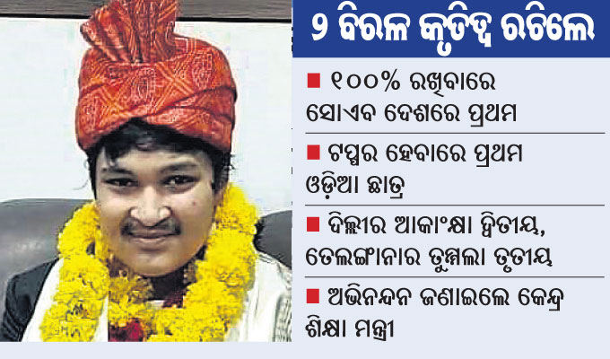 ଭୁବନେଶ୍ୱର, ୧୭।୧୦(ବ୍ୟୁରୋ): ନ୍ୟାଶନାଲ ଟେଷ୍ଟିଂ ଏଜେନ୍ସି (ଏନ୍ଟିଏ) ଦ୍ୱାରା ପରିଚାଳିତ ନ୍ୟାଶନାଲ ଏଲିଜିବିଲିଟି କମ୍ ଏଣ୍ଟ୍ରାନ୍ସ ଟେଷ୍ଟ(ଏନ୍ଇଇଟି)-୨୦୨୦ ଫଳ ଶୁକ୍ରବାର ପ୍ରକାଶ ପାଇଛି। ଓଡ଼ିଶାର ସୋଏବ ଅଫ୍ତାବ ଦେଶରେ ଟପ୍ପର ହୋଇଛନ୍ତି। ଦିଲ୍ଲୀର ଆକାଂକ୍ଷା ସିଂ ଦ୍ୱିତୀୟ ସ୍ଥାନରେ ରହିଥିବାବେଳେ ତେଲାଙ୍ଗାନାର ତୁମ୍ମଲା ସ୍ନିକିଠା ତୃତୀୟ ହୋଇଛନ୍ତି। ତେବେ ସୋଏବ ମୋଟ ୭୨୦ରୁ ୭୨୦ ନମ୍ବର(୧୦୦%) ରଖି ସର୍ବଭାରତୀୟ ସ୍ତରରେ ର଼୍ୟାଙ୍କ ୧ ହାସଲ କରିବାର ବିରଳ କୃତିତ୍ୱ ଅର୍ଜନ କରିଛନ୍ତି। ତାଙ୍କ ପୂର୍ବରୁ ଏନ୍ଇଇଟିରେ କୌଣସି ଛାତ୍ର ଶତପ୍ରତିଶତ ନମ୍ବର ରଖି ନ ଥିଲେ। ସେହିଭଳି ଏନ୍ଇଇଟି ଟପ୍ପର ହେବାରେ ସେ ହେଉଛନ୍ତି ପ୍ରଥମ ଓଡ଼ିଆ ଛାତ୍ର। ସୋଏବଙ୍କ ଏହି ସଫଳତା କେବଳ ଓଡ଼ିଶା ପାଇଁ ଗୌରବ ଆଣିଦେଇନି, ବରଂ ଦେଶ ପାଇଁ ନୂଆ ଇତିହାସ ସୃଷ୍ଟି କରିଛି। ୨ ରେକର୍ଡ ଭାଙ୍ଗିଥିବା ଏହି ୧୮ବର୍ଷୀୟ ମେଧାବୀ ଛାତ୍ରଙ୍କ ଘର ରାଉରକେଲାରେ ହୋଇଥିବାବେଳେ ପାଠପଢ଼ା ପାଇଁ ସେ ରାଜସ୍ଥାନର କୋଟାରେ ରହୁଛନ୍ତି। କୋଟାର ଏକ କୋଚିଂ ସେଣ୍ଟରରେ ସେ ନାମ ଲେଖାଇ ଏନ୍ଇଇଟି ପାଇଁ ନିଜକୁ ପ୍ରସ୍ତୁତ କରୁଥିଲେ। ତାଙ୍କ ବାପା ଜଣେ ବ୍ୟବସାୟୀ ହୋଇଥିବାବେଳେ ସେ ରାଉରକେଲାରେ ରୁହନ୍ତି। କିନ୍ତୁ ପାଠପଢା ଓ କ୍ୟାରିୟର ପାଇଁ ମା’ତାଙ୍କୁ ରାଜସ୍ଥାନ ନେଇଥିଲେ। ତେବେ ସେ ଦିଲ୍ଲୀ ଏମ୍ସରେ ପଢ଼ିବାକୁ ଲକ୍ଷ୍ୟ ରଖିବା ସୋଏବ୍ କହିଛନ୍ତି।