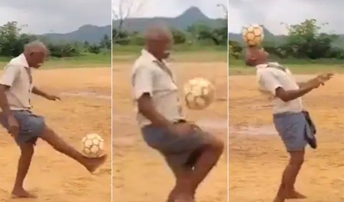 ଲୁଙ୍ଗି ପିନ୍ଧି ଫୁଟ୍‌ବଲ ଖେଳିଲେ ବୃଦ୍ଧ, ଭିଡିଓ ଦେଖିଲେ…