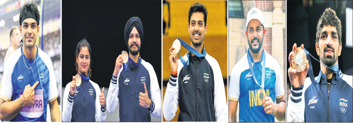 ଭାରତ ପାଇଁ ପଦକ ଅଭିଯାନ ଆରମ୍ଭ କରିଥିଲେ ତାରକା ମହିଳା ଶୁଟର ମନୁ ଭାକର। ସେ ଜୁଲାଇ ୨୮ରେ ମହିଳା ୧୦ ମିଟର ଏୟାର ପିସ୍ତଲ ଇଭେଣ୍ଟରେ ବ୍ରୋଞ୍ଜ ପଦକ ଜିତି ଭାରତୀୟ କ୍ରୀଡ଼ାପ୍ରେମୀଙ୍କ ମଧ୍ୟରେ ଖୁସି ଭରିଥିଲେ। ଗୋଟିଏ ପଦକରେ ସନ୍ତୁଷ୍ଟ ହୋଇ ନ ଥିଲେ ଭାକର। ଜୁଲାଇ ୩୦ରେ ଅନୁଷ୍ଠିତ ମିକ୍ସଡ ୧୦ ମିଟର ଏୟାର ପିସ୍ତଲ ଇଭେଣ୍ଟରେ ସେ ସରବଜୋତ ସିଂଙ୍କ ସହ ଆଉ ଏକ ବ୍ରୋଞ୍ଜ ପଦକ ହାସଲ କରିଥିଲେ। ଅଗଷ୍ଟ ୧ରେ ଶୁଟିଂ ଇଭେଣ୍ଟରୁ ଭାରତକୁ ମିଳିଥିଲା ୩ୟ ବ୍ରୋଞ୍ଜ ପଦକ। ଏଥର ସଫଳତା ତାଲିକାରେ ସାମିଲ ହୋଇଥିଲେ ସ୍ବପ୍ନିଲ କୁସାଲ। ସେ ପୁରୁଷ ୫୦ ମିଟର ରାଇଫଲ ଥ୍ରୀ-ପୋଜିଶନ୍ସ ଇଭେଣ୍ଟରେ ତୃତୀୟ ସ୍ଥାନ ଅଧିକାର କରିଥିଲେ। ଅଗଷ୍ଟ ୮ରେ ଭାରତକୁ ଡବଲ ପଦକ ମିଳିଥିଲା। ପୁରୁଷ ହକି ଦଳ ସ୍ପେନ୍କୁ ୨-୧ ଗୋଲରେ ହରାଇ ଅଲିମ୍ପିକ୍ସ ବ୍ରୋଞ୍ଜ ପଦକ ବଜାୟ ରଖିଥିବାବେଳେ ଗୋଲ୍ଡେନ ବୟ ନୀରଜ କୁମାର ଏଥର ପୁରୁଷ ଜାଭେଲିନ୍ ଥ୍ରୋରେ ରୌପ୍ୟ ପଦକ ହାସଲ କରିଥିଲେ। ଏଥିସହ ଅଲିମ୍ପିକ୍ସର ବ୍ୟକ୍ତିଗତ ଇଭେଣ୍ଟରେ ଏକାଧିକ ପଦକ ଜିତିବାରେ ସେ ଭାରତର ସବୁଠାରୁ ସଫଳ ପ୍ରତିଯୋଗୀ ହୋଇ ଯାଇଥିଲେ। ଅଗଷ୍ଟ ୯ରେ ରେସଲିଂରୁ ମିଳିଥିଲା ଭାରତକୁ ୬ଷ୍ଠ ତଥା ଅନ୍ତିମ ପଦକ। ପୁରୁଷ ୫୭ କେଜି ଫ୍ରିଷ୍ଟାଇଲ ରେସଲିଂରେ ଅମନ ସେରାଓ୍ବତ ଏହି ସଫଳତା ପାଇଥିଲେ।