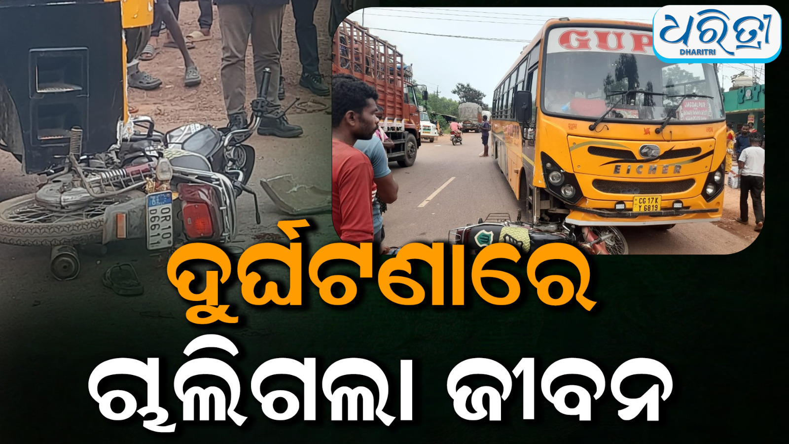 କୋଟପାଡ଼,୧୮।୬(ରାଜଶେଖର): କୋରାପୁଟ ଜ଼ିଲା କୋଟପାଡ଼ ଅଞ୍ଚଳରେ ବୁଧବାର ୨ଟି ସ୍ଥାନରେ ସଡ଼କ ଦୁର୍ଘଟଣାରେ ଜଣେ ମୃତ, ଜଣେ ଗୁରୁତର ହେଇଥିବା ଜଣାପଡିଛି । ଅପରାହ୍ନ ୩ଟାରେ କୋଟପାଡ଼ ସହ କୁସୁମୀକୁ ସଂଯୋଗ କରୁଥିବା ପୂର୍ତ୍ତ ବିଭାଗ ରାସ୍ତା ବୋବେୟା ପଞ୍ଚୟତ ଚିଲିଗୁଡା ନିକଟରେ ଦୁର୍ଘଟଣା ଘଟିଥିଲା। ସେହିଭଳି ୫ଟାରେ କୋଟପାଡ଼ ଜୟପୁର ଜାତୀୟ ରାଜପଟ ୬୩ ନଂ ସୋର୍ଗୀଗୁଡା ଛକ ନିକଟରେ ଏକ ଦୁର୍ଘଟଣା ଘଟିଛି l ଚିଲିଗୁଡା ରାସ୍ତାରେ ଫୁପୁ ଗଁାର ନୀଳାମ୍ବର ନାୟକ(୫୦) ନିଜ ବାଇକ ନେଇ କୌଣସି କାମରେ ବୋବେୟା ଯାଇ ଫେରୁଥିବା ସମୟରେ ଉକ୍ତ ରାସ୍ତାରେ ଦୁର୍ଘଟଣା ଘଟିଥିଲା। ତାଙ୍କ ବାଇକ ରାସ୍ତା ଉପରେ ପଡିଥିବା ସହ ସେ ରାସ୍ତା ପାର୍ଶ୍ୱ ଏକ ନାଳରେ ପଡିଥିବା ଯାତାୟତ କରୁଥିବା ଲୋକେ ଦେଖି ତୁରନ୍ତ କୋଟପାଡ଼ ପୋଲିସକୁ ଖବର ଦେଇଥିଲେ। ଏଥି ପୂର୍ବରୁ ତାଙ୍କର ମୃତ୍ୟୁ ହେଇଥିବା ଉପସ୍ଥିତ ଲୋକେ କହିଛନ୍ତି।
