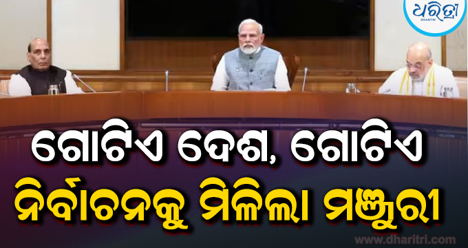 ନୂଆଦିଲ୍ଲୀ,୧୮।୯: ଓ୍ବାନ ନେଶନ ଓ୍ବାନ ଇଲେକଶନର ଅର୍ଥ ହେଉଛି ଗୋଟିଏ ଦେଶ-ଗୋଟିଏ ନିର୍ବାଚନ। ଏହା ଏବେ ମୋଦି କ୍ୟାବିନେଟର ଅନୁମୋଦନ ଲାଭ କରିଛି। ବୁଧବାର (ସେପ୍ଟେମ୍ବର ୧୮)ରେ କେନ୍ଦ୍ର କ୍ୟାବିନେଟ ଗୋଟିଏ ଦେଶ, ଗୋଟିଏ ନିର୍ବାଚନରେ ଉପସ୍ଥାପିତ ହୋଇଥିବା ରିପୋର୍ଟକୁ ଅନୁମୋଦନ କରିଛି। ସୂଚନାନୁସାରେ, ସଂସଦର ଆଗାମୀ ଶୀତ ଅଧିବେଶନରେ ୱାନ ନେସନ-ୱାନ ଇଲେକଶନ ବିଲ ଉପସ୍ଥାପିତ ହେବ।