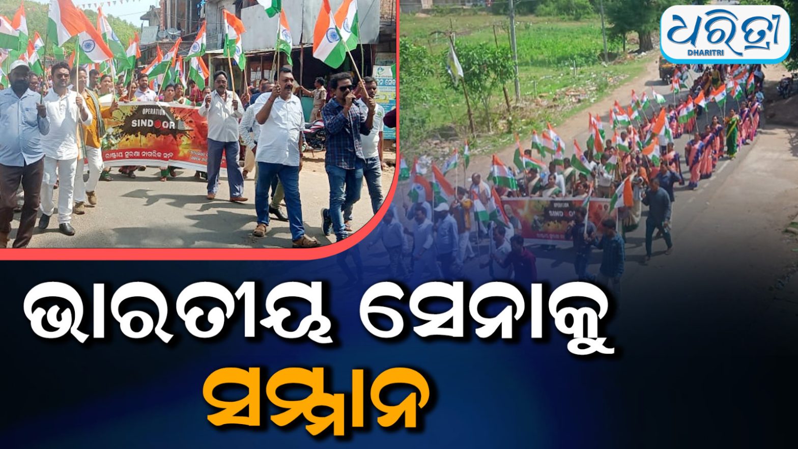 ତୁମୁଡିବନ୍ଧ(ଦୀପକ କୁମାର ପରାସେଠ):ଅପରେଶନ ସିନ୍ଦୁରର ସଫଳତାକୁ ନେଇ ଭାରତୀୟ ସେନାକୁ ସମ୍ମାନ ଜଣାଇବା ଓ ଉତ୍ସାହିତ କରିବା ଲାଗି ତୁମୁଡିବନ୍ଧଠାରେ ସୋମବାର ତ୍ରିରଙ୍ଗା ଶୋଭାଯାତ୍ରା କରାଯାଇଛି। ତୁମୁଡିବନ୍ଧ ବ୍ଲକ ଏମ୍ପି ପ୍ରତିନିଧି ପୂର୍ଣ୍ଣଚନ୍ଦ୍ର ପାଢ଼ୀ, ପୂର୍ବତନ ଜିଲା ପରିଷଦ ଅଧ୍ୟକ୍ଷ ନେତ୍ର ମାନସେଠ ଓ ତୁମୁଡିବନ୍ଧ ବ୍ଲକ ଅଧ୍ୟକ୍ଷା ବାସନ୍ତି ମାଝିଙ୍କ ନେତୃତ୍ୱରେ ଶହ ଶହ ମହିଳା ପୁରୁଷ ତୁମୁଡିବନ୍ଧ ଆମ୍ବେଦକର ଛକଠାରେ ଏକତ୍ରିତ ହୋଇ ବ୍ୟାନର ଓ ତ୍ରିରଙ୍ଗା ପତାକା ଧରି ଭାରତୀୟ ସେନା ଜିନ୍ଦାବାଦ ନାରା ଦେଇ ଶୋଭାଯାତ୍ରାରେ ବାହାରି ପଞ୍ଚାୟତ ଛକ ପର୍ଯ୍ୟନ୍ତ ଯାଇଥିଲେ।