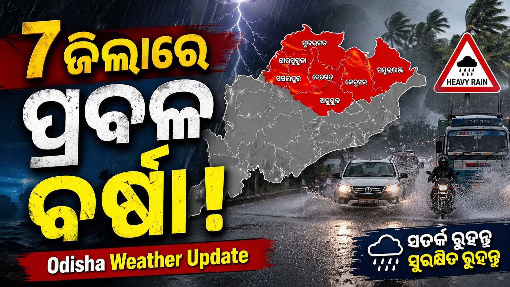 ଆସନ୍ତା ୨୪ ଘଣ୍ଟାରେ ୭ ଜିଲ୍ଲା ସୁନ୍ଦରଗଡ, କେନ୍ଦୁଝର, ମୟୂରଭଞ୍ଜ, ବାଲେଶ୍ୱର, ଭଦ୍ରକ, ଗଞ୍ଜାମ ଓ ଗଜପତି ଜିଲ୍ଲାରେ ପ୍ରବଳ ଝଡ଼ ବର୍ଷା ନେଇ ଅରେଞ୍ଜ ଆଲର୍ଟ ଜାରି କରାଯାଇଛି। କେତେକ ସ୍ଥାନରେ ହଠାତ୍ ପାଗ ବଦଳିପାରେ। କିଛି ସ୍ଥାନରେ ପ୍ରବଳରୁ ଅତି ପ୍ରବଳ ବର୍ଷା ହେବା ନେଇ ପୂର୍ବାନୁମାନ କରିଛି ପାଣିପାଗ ବିଭାଗ । ଏହି ସମୟରେ ଘଣ୍ଟା ପ୍ରତି ୫୦ ରୁ ୬୦ କିଲୋମିଟର ବେଗରେ ପବନ ବହିବାର ସମ୍ଭାବନା ରହିଛି।