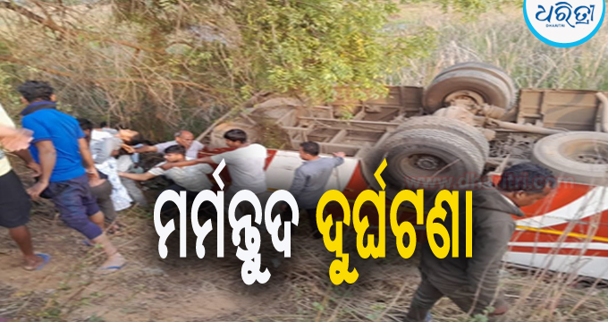 ଅନୁଗୋଳ,୨୬।୧(ମାନସ ବିଶ୍ୱାଳ): ଅନୁଗୋଳ ଜିଲା ତାଳଚେର ଗହମଗ୍ରାମ ଆମ୍ଭତୋଟା ନିକଟରେ ରବିବାର ଏକ ମର୍ମନ୍ତୁଦ ଦୁର୍ଘଟଣା ଘଟିଛି। କେନ୍ଦୁଝରରୁ ଅନୁଗୋଳ ଆସୁଥିବା ଏକ ଓଏସ୍ଆର୍ଟିସି ଯାତ୍ରୀବାହୀ ବସ୍ ଭାରସାମ୍ୟ ହରାଇ ଓଲଟି ପଡିଛି।