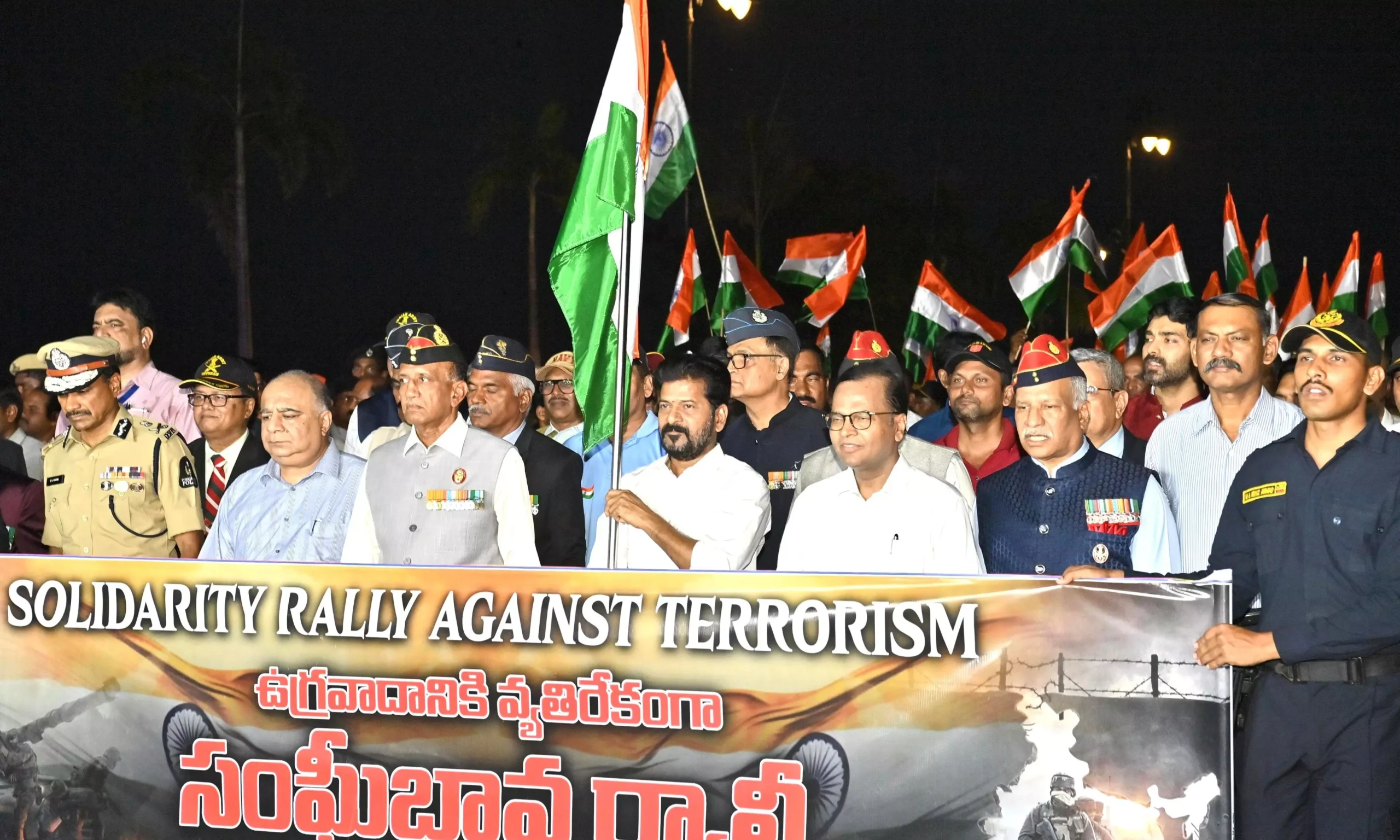 ହାଇଦ୍ରାବାଦ, ୮।୫: ତେଲଙ୍ଗାନା ମୁଖ୍ୟମନ୍ତ୍ରୀ ରେବନ୍ତ ରେଡ୍ଡୀ ଅପରେସନ ସିନ୍ଦୂର ଆରମ୍ଭ ହେବା ପରେ ଭାରତୀୟ ସଶସ୍ତ୍ର ବାହିନୀକୁ ପୂର୍ଣ୍ଣ ସମର୍ଥନ ଜଣାଇଛନ୍ତି। ଗୁରୁବାର ହାଇଦ୍ରାବାଦରେ ଆୟୋଜିତ ଏକ ‘ଜାତୀୟ ଏକତା ରାଲି’ରେ ସମ୍ବୋଧନ କରି ରେଡ୍ଡୀ ଚେତାବନୀ ଦେଇଛନ୍ତି ଯେ ଭାରତୀୟ ସୈନିକମାନେ “ପାକିସ୍ତାନକୁ ବିଶ୍ୱ ମାନଚିତ୍ରରୁ ଲିଭାଇ ଦେଇପାରନ୍ତି।” ଏହି ରାଲି ପହଲଗାମରେ ସମ୍ପ୍ରତି ଘଟିଥିବା ଆତଙ୍କବାଦୀ ଆକ୍ରମଣ ଏବଂ ଅପରେସନ ସିନ୍ଦୂର ମାଧ୍ୟମରେ ଭାରତର ସାମରିକ ଜବାବର ପ୍ରତିକ୍ରିୟା ସ୍ୱରୂପ ଆୟୋଜିତ ହୋଇଥିଲା।