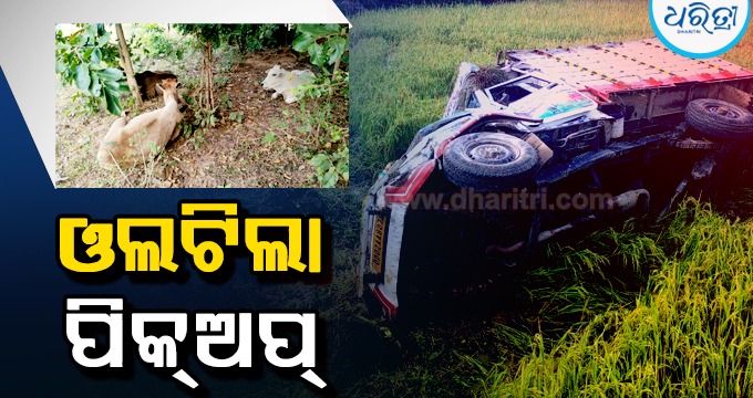 ପାଟଣା,୨୫ା୧୧(ବୀରକିଶୋର ଦାଶ): କେନ୍ଦୁଝର ଜିଲା ପାଟଣା ଥାନା ଭାଲିଆଡିହା ନିକଟରେ ଏକ ବେଆଇନ ଗୋରୁ ବୋଝେଇ ଗାଡ଼ି ସୋମବାର ସକାଳୁ ଦୁର୍ଘଟଣାଗସ୍ତ ହୋଇ ଓଲଟି ପଡ଼ିଛି। ରାଇ ଡିହା ପାର୍ଶ୍ୱରୁ ଗୋରୁ ବୋଝେଇ ପିକ୍ଅପ୍ଟି ସାହାରପଡ଼ା ଅଭିମୁଖେ ଯାଉଥିବା ବେଳେ ଭାଲିଆଡିହା ବାଙ୍କ ନିକଟରେ ଭାରସାମ୍ୟ ହରାଇ ଓଲଟି ପଡ଼ିଥିଲା। ଦୁର୍ଘଟଣା ପରେ ମାଫିଆମାନେ ଗୋରୁଙ୍କୁ ନେଇ ଅନ୍ୟତ୍ର ଲୁଚାଇ ରଖିଥିବାବେଳେ ଦୁର୍ଘଟଣାସ୍ଥଳରୁ କିଛି ଦୂରରୁ ୭ ଗୋରୁଙ୍କୁ ସ୍ଥାନୀୟ ଲୋକେ ଉଦ୍ଧାର କରିଛନ୍ତି। ଏଥିମଧ୍ୟରୁ ଗୋଟିଏ ଗାଈ ଗୁରୁତର ହୋଇଛି। ପୋଲିସ ଘଟଣାସ୍ଥଳରେ ପହଞ୍ଚି ତଦନ୍ତ ଆରମ୍ଭ କରିଛି। ସ୍ଥାନୀୟ ଲୋକେ ପଶୁ ଡାକ୍ତରଙ୍କ ଦ୍ୱାରା ଗୁରୁତର ଗୋରୁଙ୍କ ଚିକିତ୍ସା କରାଉଛନ୍ତି।