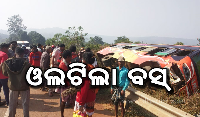 କେନ୍ଦୁଝର,୫ା୧୨(ସ୍ବ.ପ୍ର.): ଢେଙ୍କାନାଳ ଜିଲା କାମାକ୍ଷାନଗରରୁ କେନ୍ଦୁଝର ଆସୁଥିବା ଘରୋଇ ବସ୍ ‘ଅମ୍ବା’ ସୋମବାର କାଞ୍ଜିପାଣି ଥାନା ଅନ୍ତର୍ଗତ କୁଆଁର ନିକଟ ଏନ୍ଏଚ୍ ୪୯ରେ ଭାରସାମ୍ୟ ହରାଇ ରାସ୍ତାପାର୍ଶ୍ୱକୁ ଓଲଟି ପଡ଼ିଛି। ଏଥିରେ କାହାର ମୃତ୍ୟୁ ହୋଇ ନ ଥିବା ବେଳେ ଅନେକ ଯାତ୍ରୀ ଆହତ ହୋଇଥିବା ଜଣାପଡ଼ିଛି। ଆଜି ସକାଳ ପ୍ରାୟ ୯.୩୦ରେ ଏହି ଦୁର୍ଘଟଣା ଘଟିଛି। ଘଟଣାସ୍ଥଳରେ ପୋଲିସ ଓ ସ୍ଥାନୀୟ ଲୋକ ପହଞ୍ଚି ଆହତମାନଙ୍କୁ ଉଦ୍ଧାର କରି ବିଭିନ୍ନ ଡାକ୍ତରଖାନାକୁ ଚିକିତ୍ସା ପାଇଁ ପଠାଇଥିବା ଜଣାପଡ଼ିଛି। ପୋଲିସ ଘଟଣାର ତଦନ୍ତ କରୁଛି।