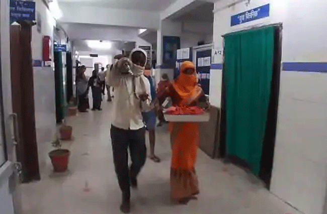 ବକ୍ସର, ୨୬।୭: ବିହାରର ବକ୍ସର ଜିଲା ସଦର ହସ୍ପିଟାଲରେ ଆଶ୍ଚର୍ଯ୍ୟ କଲା ଭଳି ଏକ ଘଟଣା ଦେଖିବାକୁ ମିଳିଛି। ଏଠାରେ ଜଣେ ବ୍ୟକ୍ତି କାନ୍ଧରେ ଅକ୍ସିଜେନ ସିଲିଣ୍ଡର ଧରିଥିବାବେଳେ ତାଙ୍କ ସ୍ତ୍ରୀ ଗୋଟିଏ ଟ୍ରେ’ରେ ନବଜାତ ଶିଶୁକୁ ଧରି ଚିକିତ୍ସା ପାଇଁ ହସ୍ପିଟାଲରେ ଏଣେତେଣେ ବୁଲୁଥିବାର ଦେଖିବାକୁ ମିଳିଛି। ତେବେ ଶେଷରେ ଦମ୍ପତ୍ତି ଦୁଇଜଣ ତାଙ୍କ ନବଜାତ ସନ୍ତାନର ଜୀବନ ରକ୍ଷା କରିବାରେ ବିଫଳ ହୋଇଥିବା ଜଣାପଡ଼ିଛି।