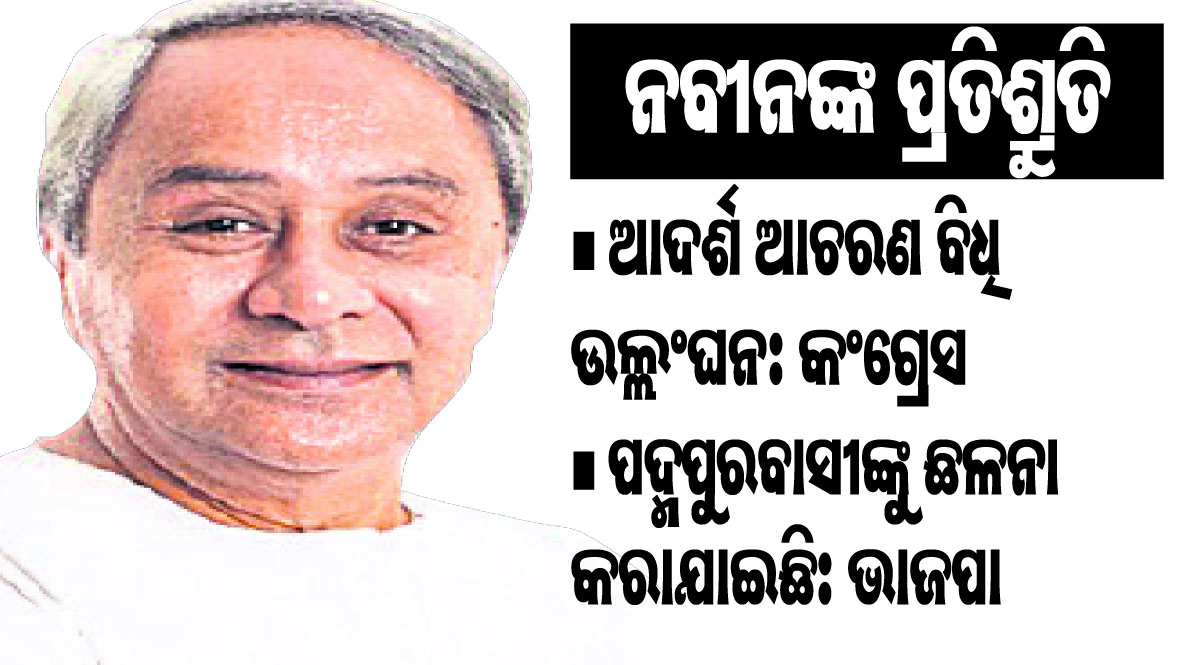ଭୁବନେଶ୍ୱର,୧୭ା୧୧(ବ୍ୟୁରୋ):ପଦ୍ମପୁରକୁ ୨୦୨୩ ଡିସେମ୍ବର ୩୧ ସୁଦ୍ଧା ଜିଲା ମାନ୍ୟତା ଦିଆଯିବ। ପଦ୍ମପୁର ଉପନିର୍ବାଚନ ଲାଗି ବିଜେଡି ଇସ୍ତାହାରରେ ବି ଏହା ସ୍ଥାନ ପାଇବ। ବିଜେଡି ସଭାପତି ତଥା ମୁଖ୍ୟମନ୍ତ୍ରୀ ନବୀନ ପଟ୍ଟନାୟକ ପଦ୍ମପୁର କ୍ରିୟାନୁଷ୍ଠାନ କମିଟି ସଦସ୍ୟଙ୍କୁ ଏପରି ପ୍ରତିଶ୍ରୁତି ଦେଇଛନ୍ତି। ପଦ୍ମପୁର ଉପନିର୍ବାଚନ ନିମନ୍ତେ ନିର୍ବାଚନ ଆଦର୍ଶ ଆଚରଣ ବିଧି ଲାଗୁ ହୋଇଥିବାରୁ ମୁଖ୍ୟମନ୍ତ୍ରୀ ହିସାବରେ ନୁହେଁ, ବିଜେଡି ସଭାପତି ହିସାବରେ ଅଞ୍ଚଳବାସୀଙ୍କୁ ଏହି ପ୍ରତିଶ୍ରୁତି ମିଳିଛି। ଏହି ଖବର ପ୍ରଚାରିତ ହେବା ପରେ ପଦ୍ମପୁରବାସୀ ଉତ୍ସାହିତ ହୋଇପଡ଼ିଥିବା ବେଳେ ସେମାନଙ୍କ ଦୀର୍ଘଦିନର ଦାବି ପୂରଣ ହେବ ବୋଲି ଆଶାବାଦୀ ଅଛନ୍ତି।