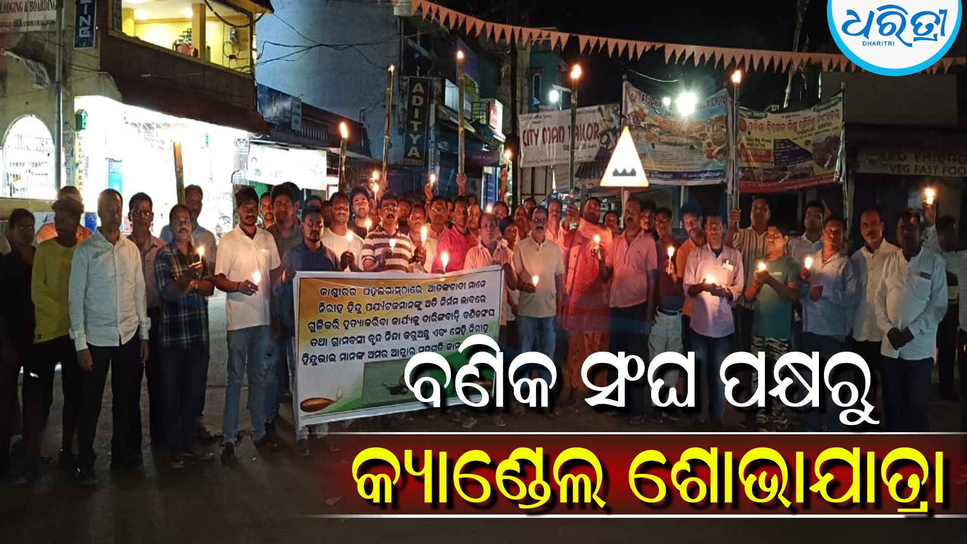 ନିରୀହ ହିନ୍ଦୁ ପର୍ଯ୍ୟଟକଙ୍କୁ ହତ୍ୟା କରିବା ଅତି ନିନ୍ଦନୀୟ ଘଟଣା। ଭାରତ ସରକାର ଶୀଘ୍ର ଆତଙ୍କୀବାଦୀଙ୍କ ଉପରେ ଦୃଢ଼ କାର୍ଯ୍ୟାନୁଷ୍ଠାନ ଗ୍ରହଣ କରନ୍ତୁ ଓ ଦେଶବାସୀଙ୍କୁ ସୁରକ୍ଷା ପ୍ରଦାନ କରନ୍ତୁ ବୋଲି ସଙ୍ଘ ପକ୍ଷରୁ କୁହାଯାଇଛି। ସଂଧ୍ୟା ୬ଟାରେ ସମସ୍ତ ଦୋକାନ ବଜାରକୁ ବନ୍ଦ କରଯାଇ ସଙ୍ଘ ପକ୍ଷରୁ ଏହି କାର୍ଯ୍ୟକ୍ରମ କରାଯାଇଥିବା ଜଣାପଡିଛି। କାର୍ଯ୍ୟକ୍ରମରେ ବଣିକ ସଙ୍ଘର ସଭାପତି ଲଡ଼ୁ କିଶୋର ସାହୁଙ୍କ ସମେତ ଦିଲୀପ କୁମାର ସାହୁ, ସନ୍ତୋଷ କୁମାର ସାହୁ,ଭାଜପା ମଣ୍ଡଳ ସଭାପତି ମିଟୁ ସାହୁ, ମଣ୍ଟୁ ସାହୁ,ସୂର୍ଯ୍ୟ ସାହୁ, ଧିରେନ ସାହୁଙ୍କ ସମେତ ଶତାଧିକ ବ୍ୟକ୍ତିବିଶେଷ ସାମିଲ ହୋଇଥିଲେ ।